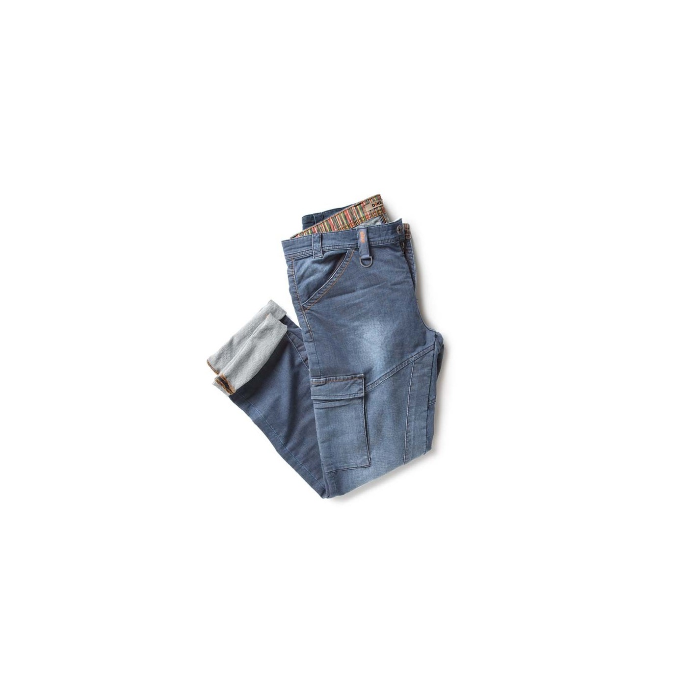 Teixit Denim de punt, rentat a la pedra i el.làstic.