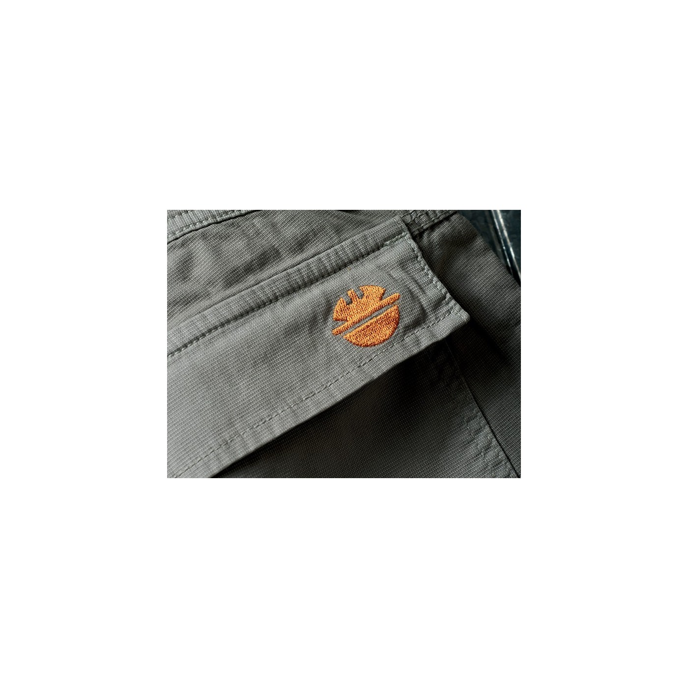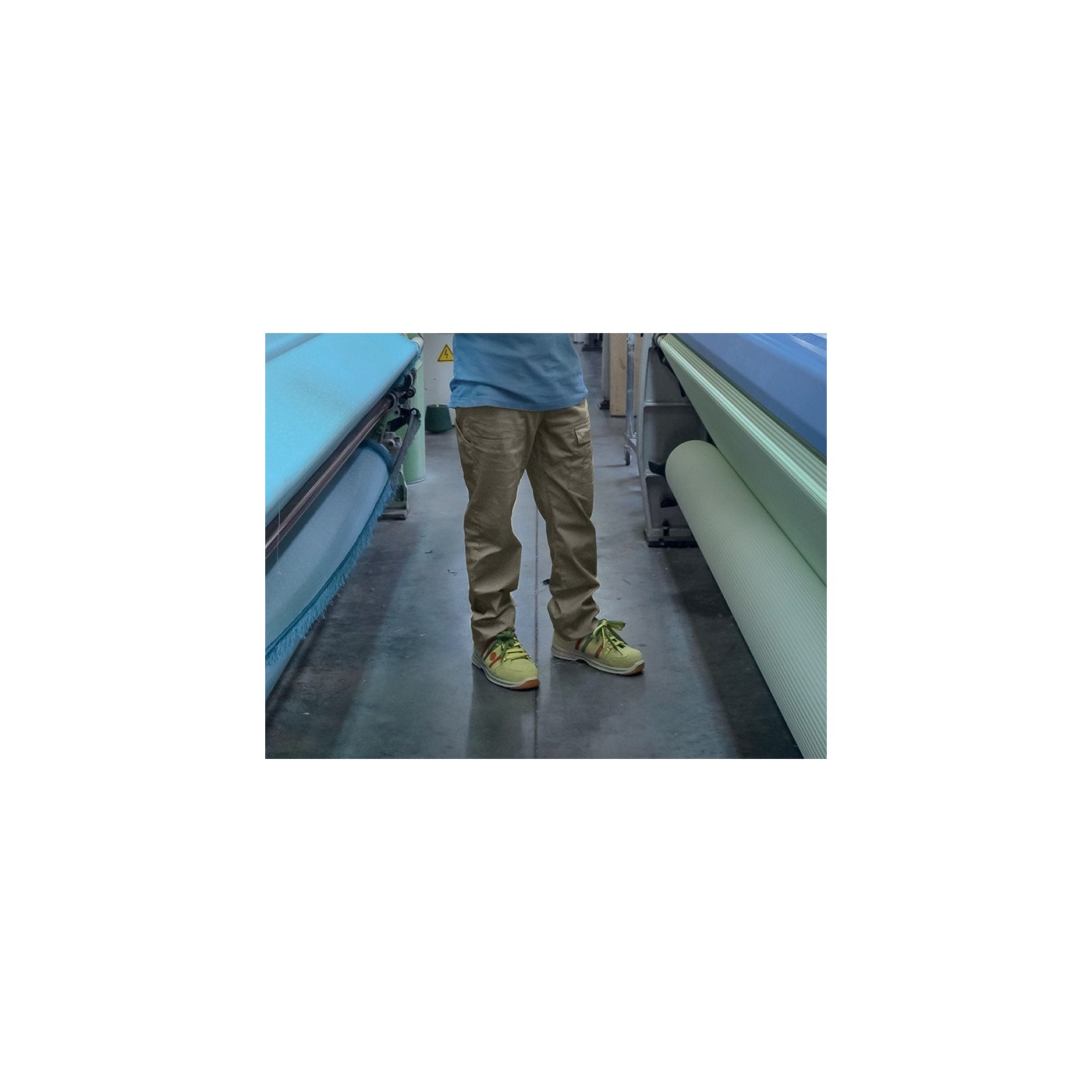 Es tracta d'un pantaló de feina fet amb teixit obert, banyat i estirat