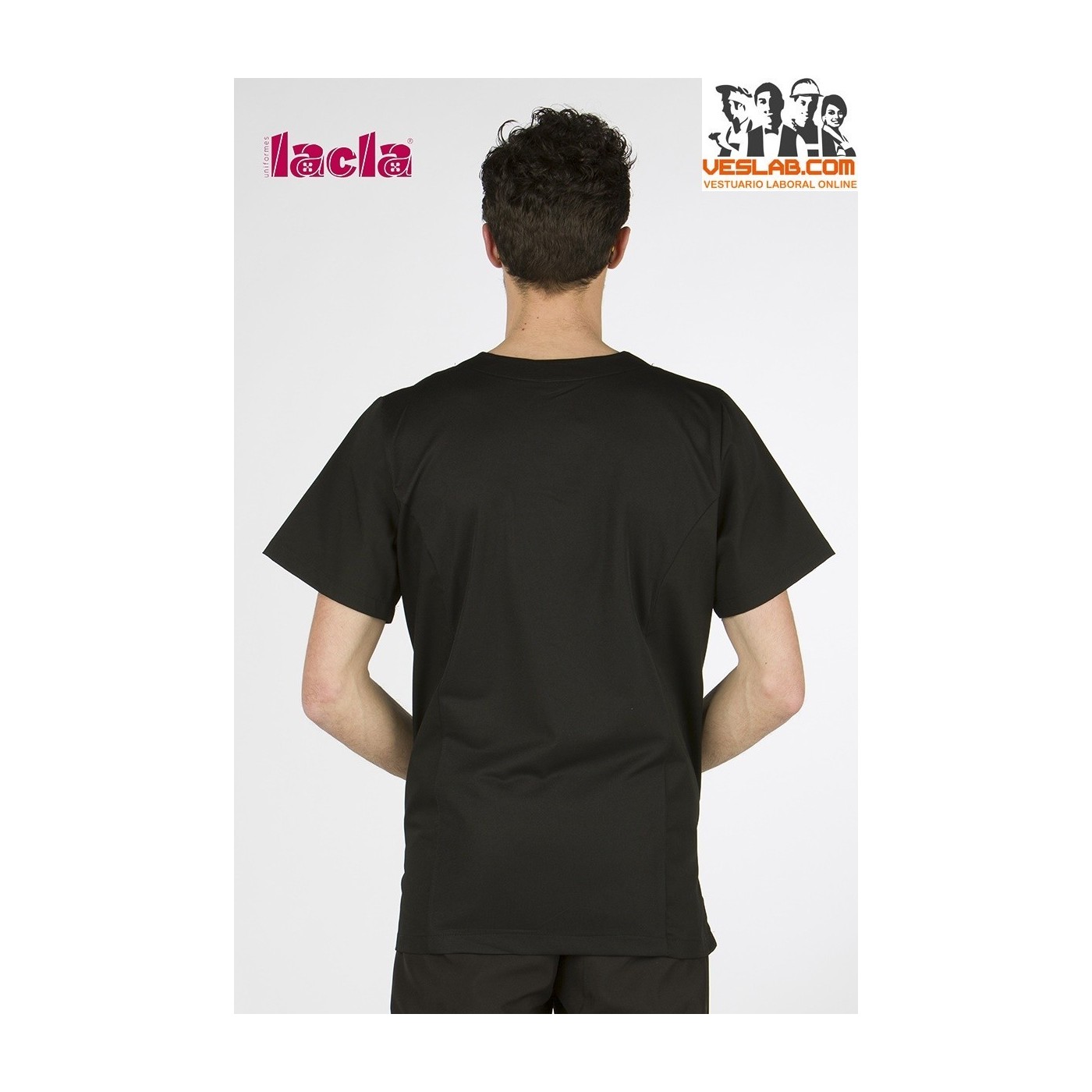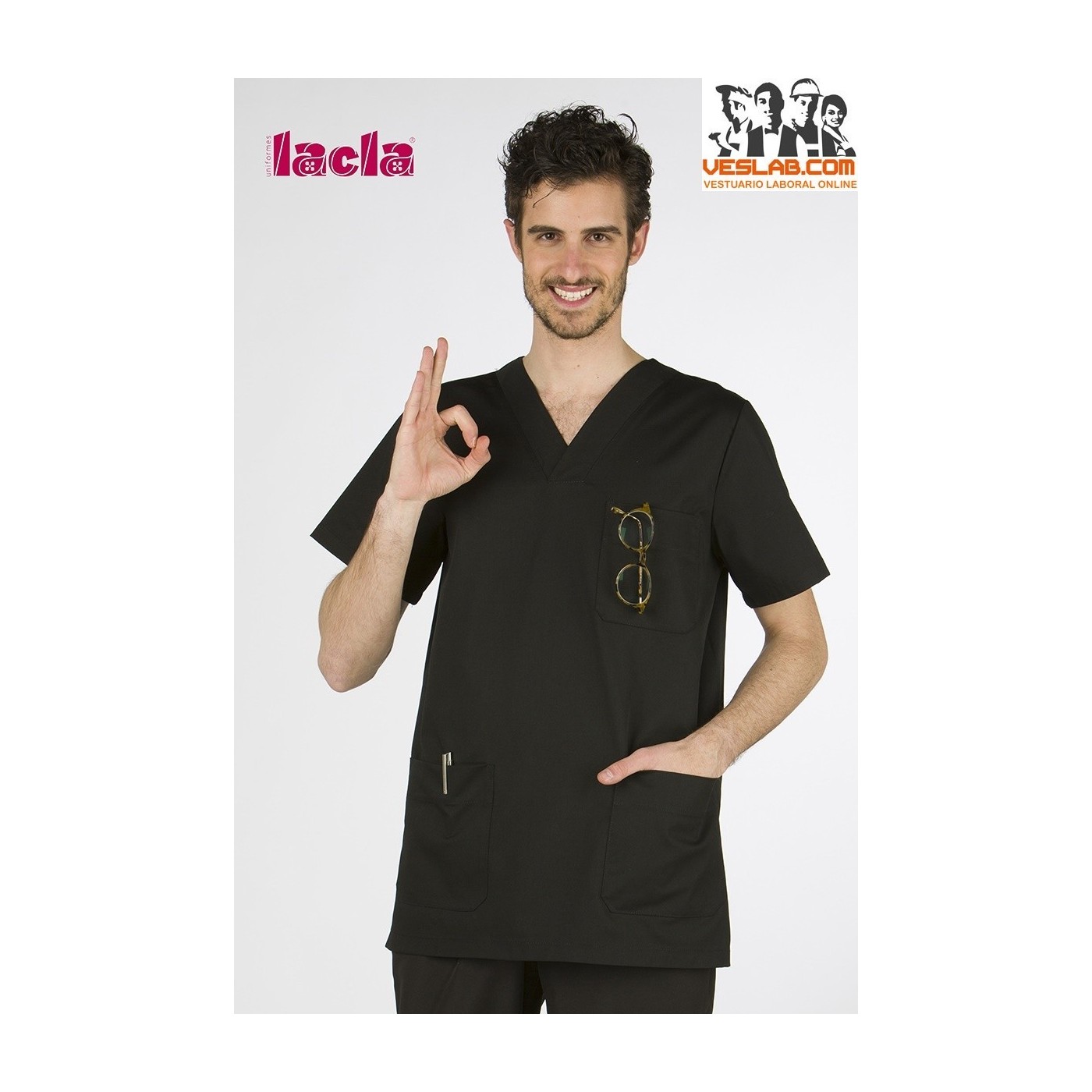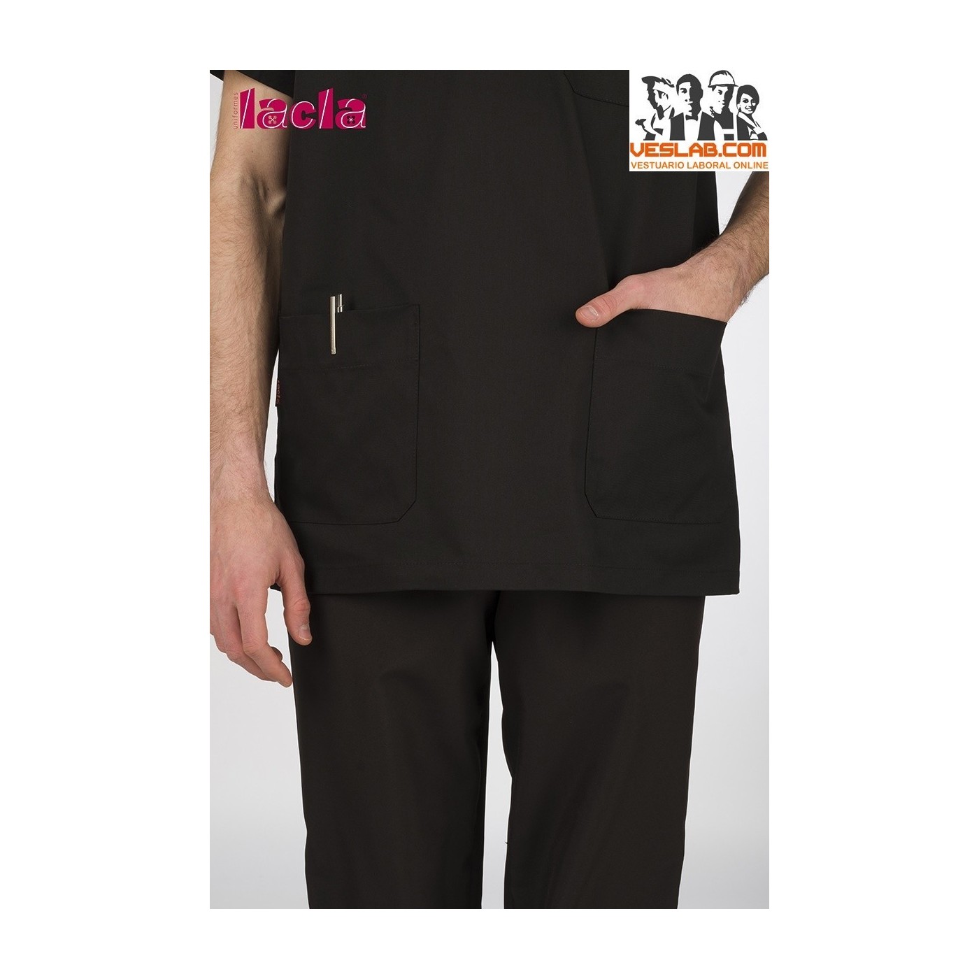 Casaca llisa UNISEX, coll en punta, màniga curta, amb butxaques 1 de pit. Esquena central amb teixit elàstic i costadillos llisos.