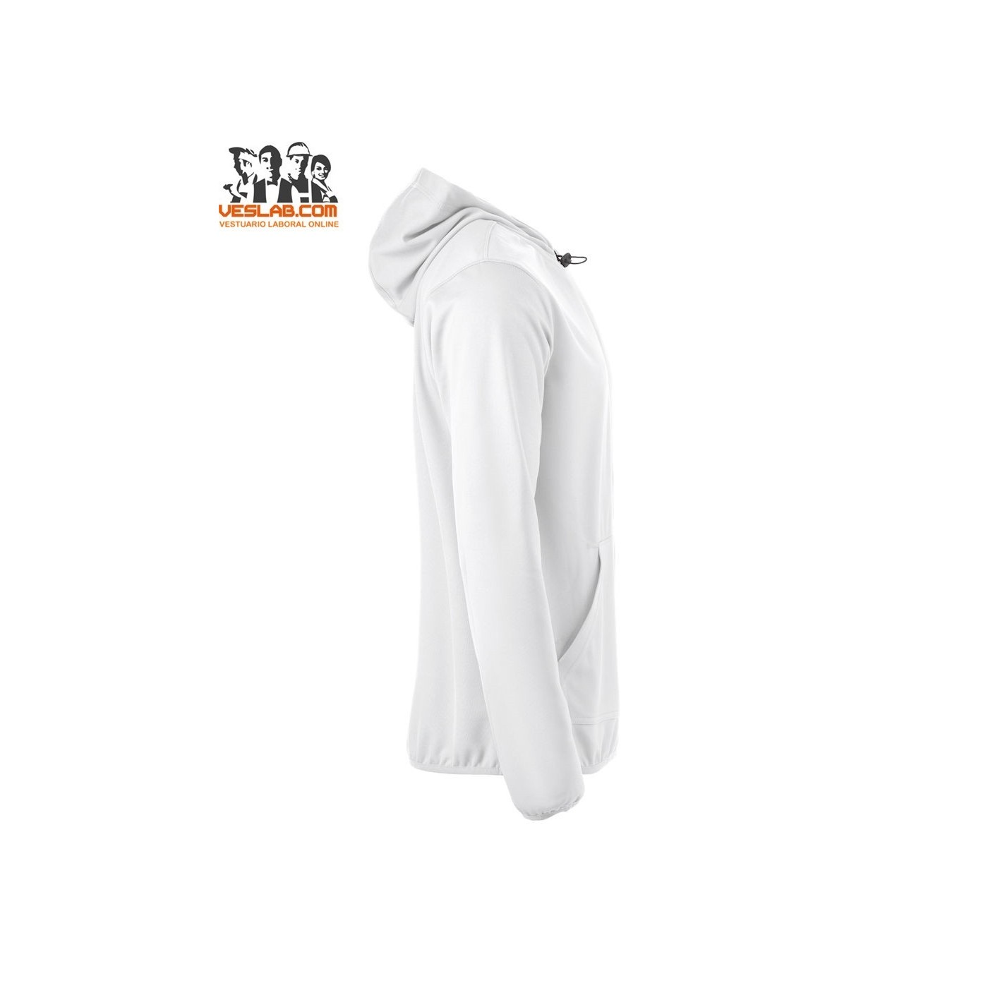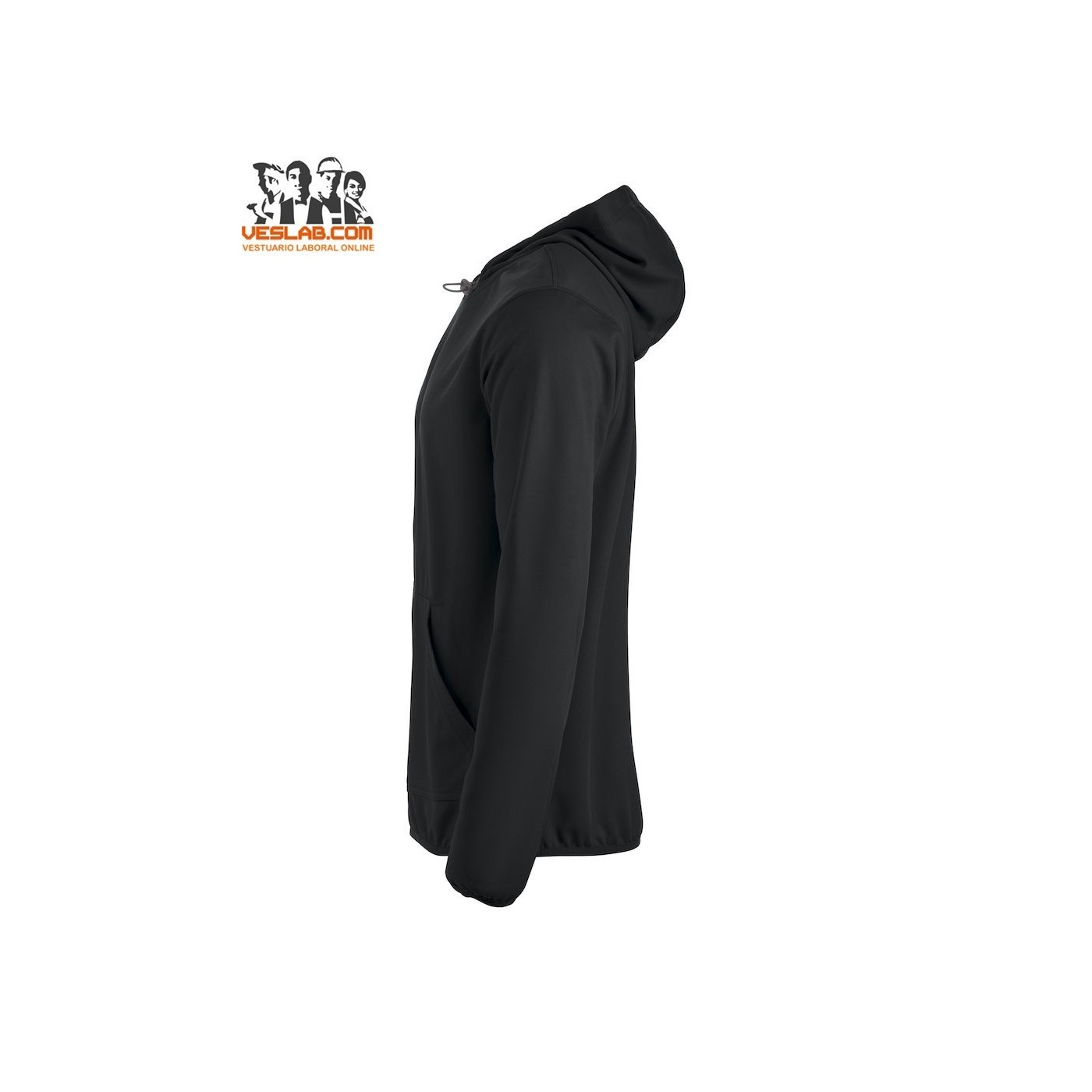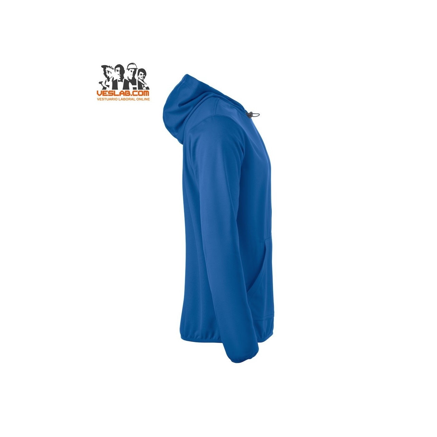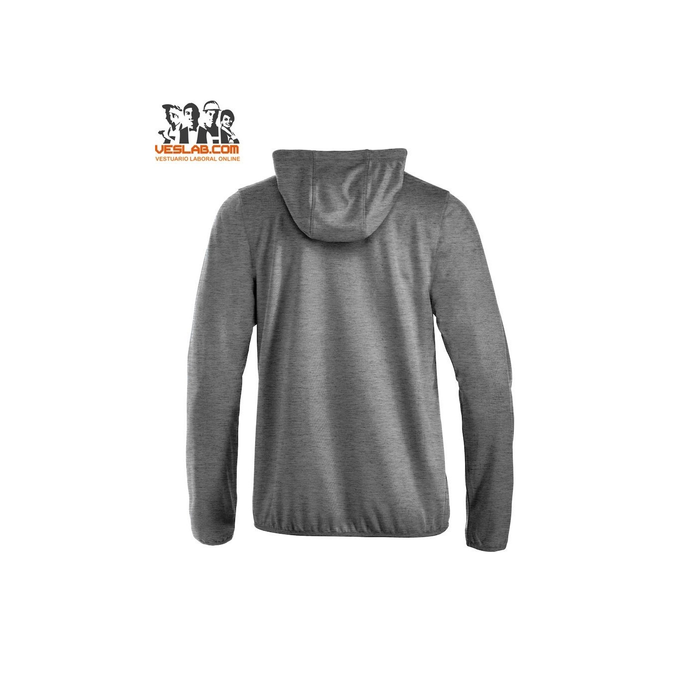 Dessuadora esportiva transpirable amb caputxa i butxaca frontal. Vora elàstic en cintura i punys. Costures remalladas i folre interior en caputxa.