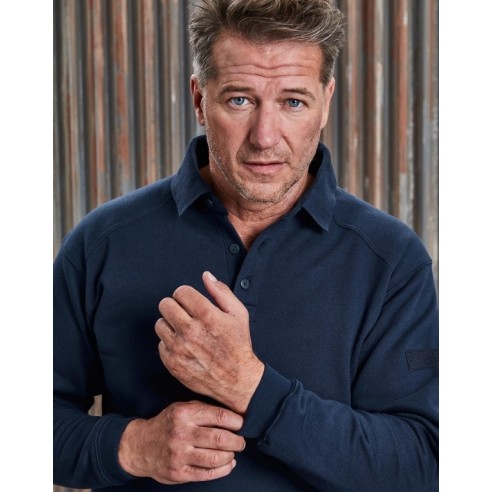 Dessuadora de treball amb coll pol per als que prefereixen donar una altra imatge o bé, els pugui molestar el coll rodó habitual.