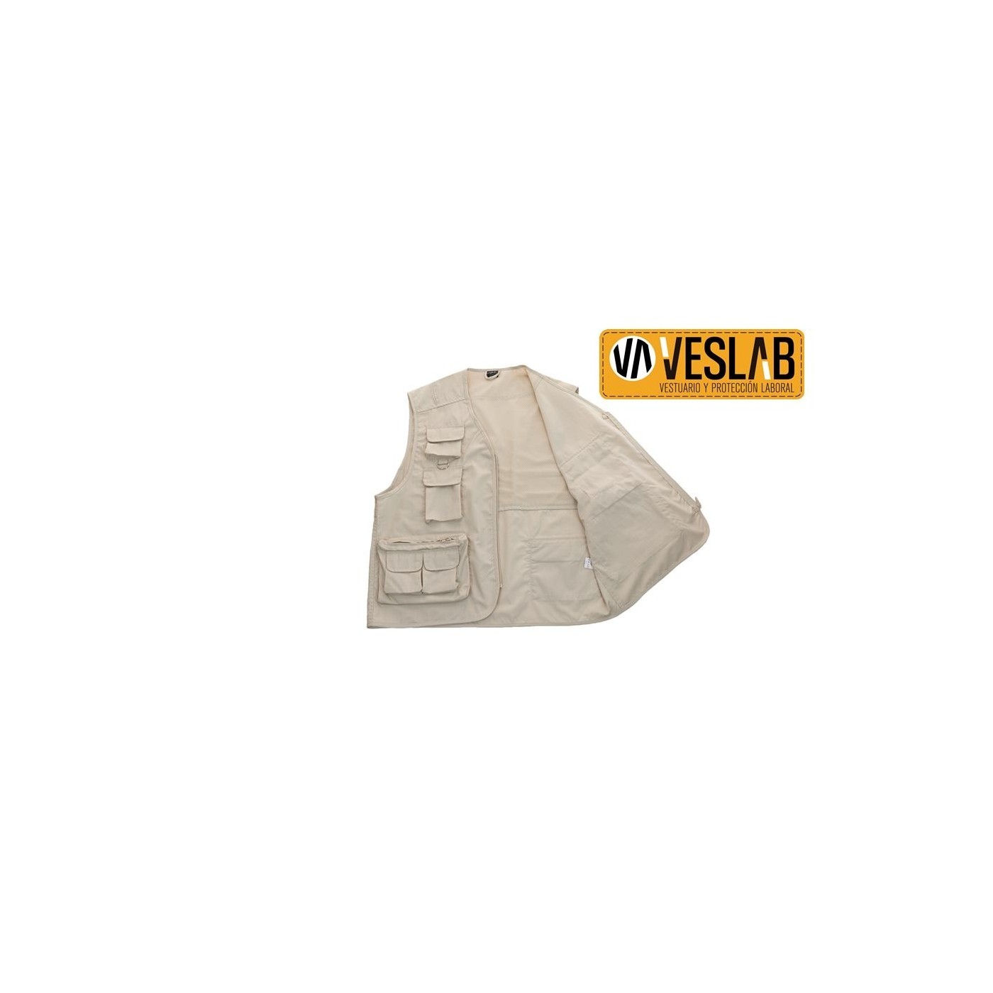 Armilla de treball multibutxaques en una resistent combinació de materials cotó i polièster de vius colors.