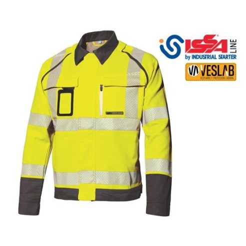 Jaqueta amb teixit elàstic d'alta visibilitat i mànigues desmuntables amb bandes reflectants termosegellades, per als que busquen la màxima comoditat en tot moment.