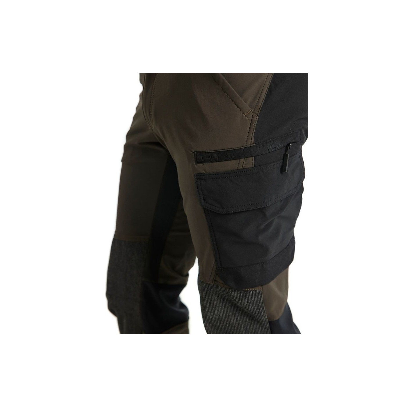 Pantalons de servei Blaklader a prova de ratllades, confeccionats amb una còmoda fibra elàstica en 4 direccions que es poden portar tant a la feina com en ocasions informals a l'exterior. Aquests pantalons tenen un tall més ajustat, una característica molt apreciada pels usuaris actuals. La goma elàstica de la cintura proporciona una comoditat addicional. Els baixos són ajustables, i l'interior de malla a la part posterior dels genolls millora la ventilació. S'han acabat els dies de treballar incòmodament.