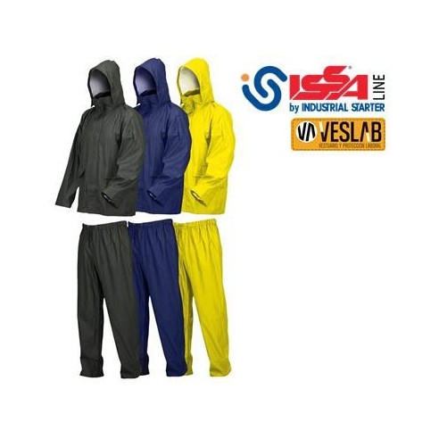Jaqueta impermeable amb caputxa, ventilació al dors i sota les aixelles. Cremallera de plàstic coberta amb botons i dues butxaques amb tanca de botó.
