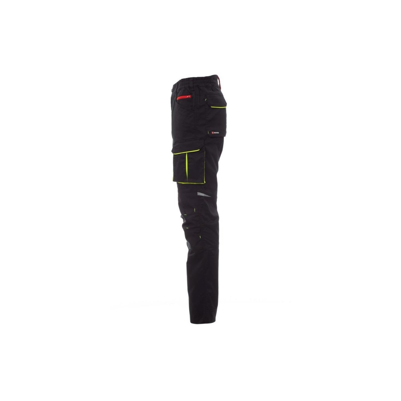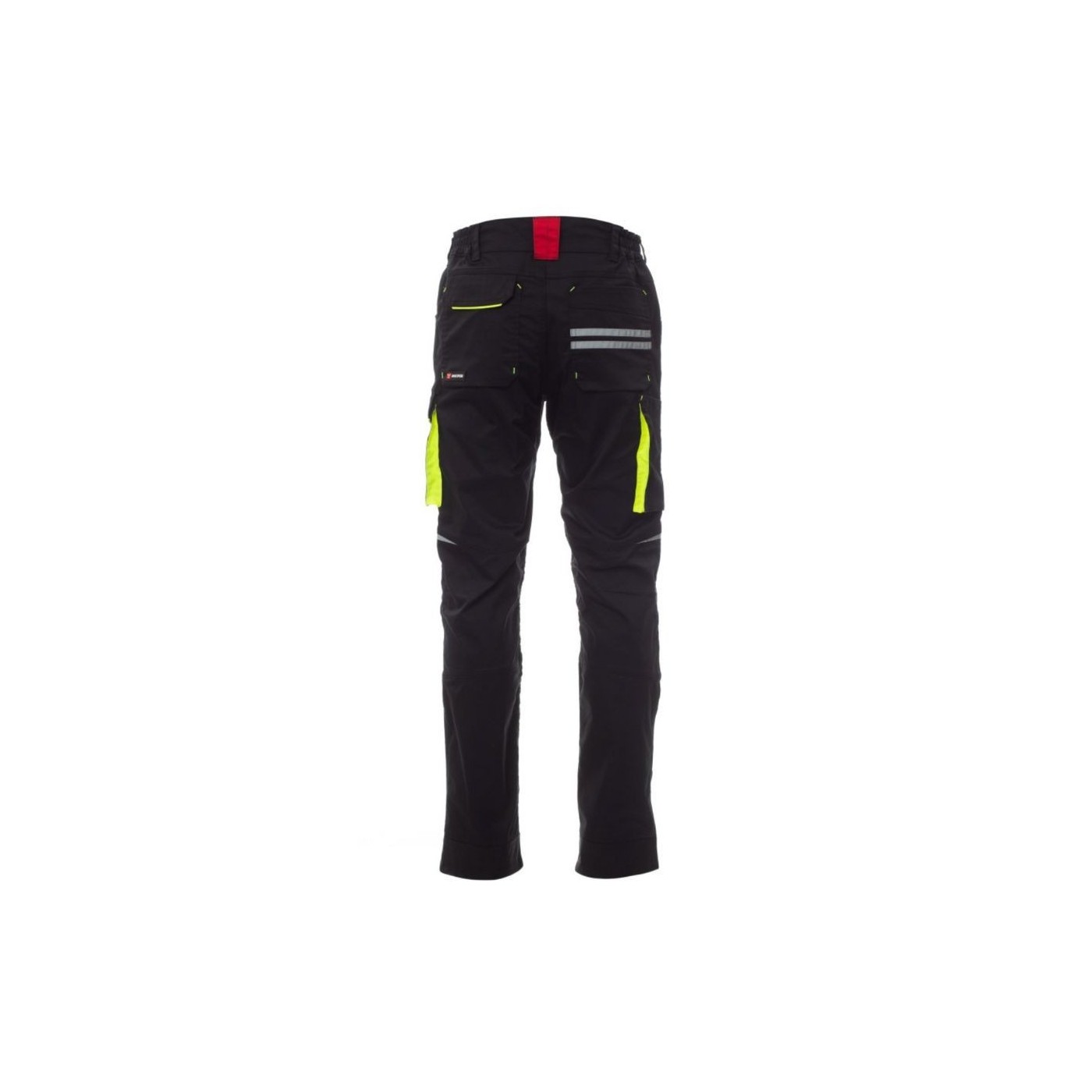 A la part davantera del camal esquerre presenta una butxaca amb manxa, tapeta tancada amb velcro i suport per a targeta d'identificació. A la part davantera del camal dret presenta una butxaca per al telèfon mòbil amb vora retroreflectant i una butxaca amb manxa. Els dos camals disposen de butxaques per a genolleres en teixit en contrast (amb obertura per la part inferior) i d'aplicacions retroreflectants que indiquen l'obertura. A la part posterior presenta una butxaca amb tapeta tancada amb velcro, una butxaca sense tapeta però amb 2 bandes retroreflectants, una butxaca per al metro (camell dret), aplicacions retroreflectants a l'alçada del genoll (ambes camals) i cinta talonera de teixit en contracte (tots dos camals). També presenta: - costures de triple agulla a l'entrecuix ia l'interior i exterior del camal - costures de reforç en contrast a diferents punts. A les talles (italianes) centrals 48-50-52, l'interior del camal té una longitud normal de 82 cm.
