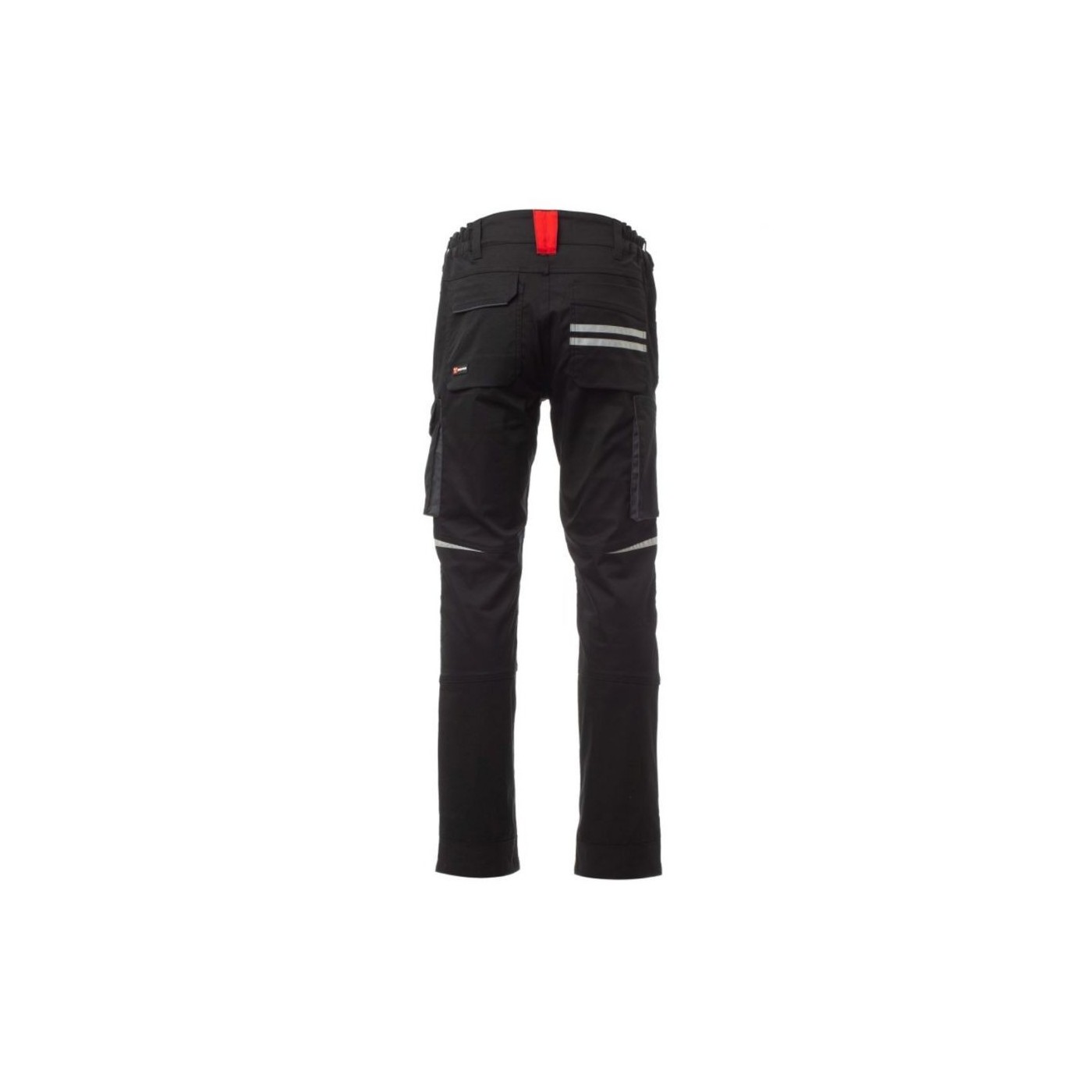 A la part davantera del camal esquerre presenta una butxaca amb manxa, tapeta tancada amb velcro i suport per a targeta d'identificació. A la part davantera del camal dret presenta una butxaca per al telèfon mòbil amb vora retroreflectant i una butxaca amb manxa. Els dos camals disposen de butxaques per a genolleres en teixit en contrast (amb obertura per la part inferior) i d'aplicacions retroreflectants que indiquen l'obertura. A la part posterior presenta una butxaca amb tapeta tancada amb velcro, una butxaca sense tapeta però amb 2 bandes retroreflectants, una butxaca per al metro (camell dret), aplicacions retroreflectants a l'alçada del genoll (ambes camals) i cinta talonera de teixit en contracte (tots dos camals). També presenta: - costures de triple agulla a l'entrecuix ia l'interior i exterior del camal - costures de reforç en contrast a diferents punts. A les talles (italianes) centrals 48-50-52, l'interior del camal té una longitud normal de 82 cm.