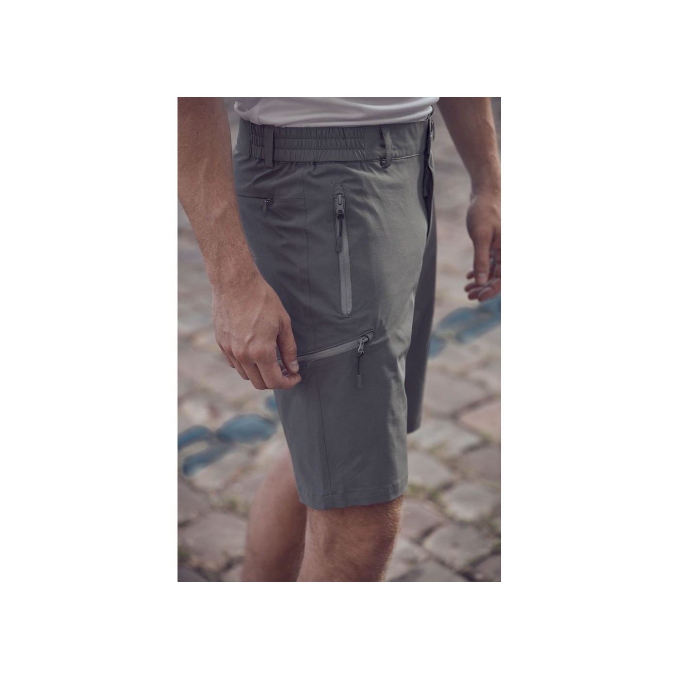 Shorts molt funcionals amb teixit de material elàstic. Elàstic a la cintura per a un millor ajustament. Presenta dues butxaques frontals amb cremallera, butxaca a la cama amb cremallera i butxaca del darrere amb cremallera oculta.