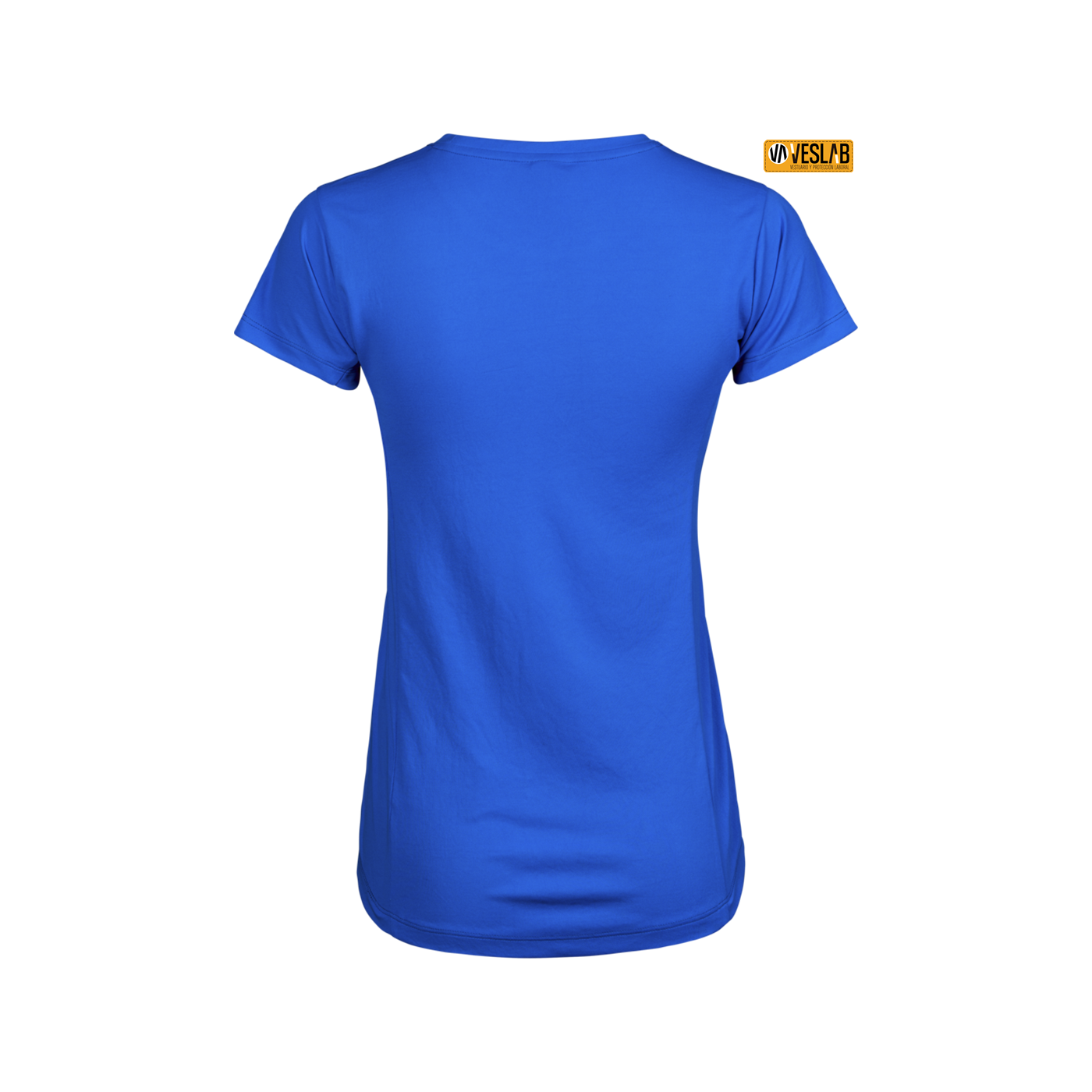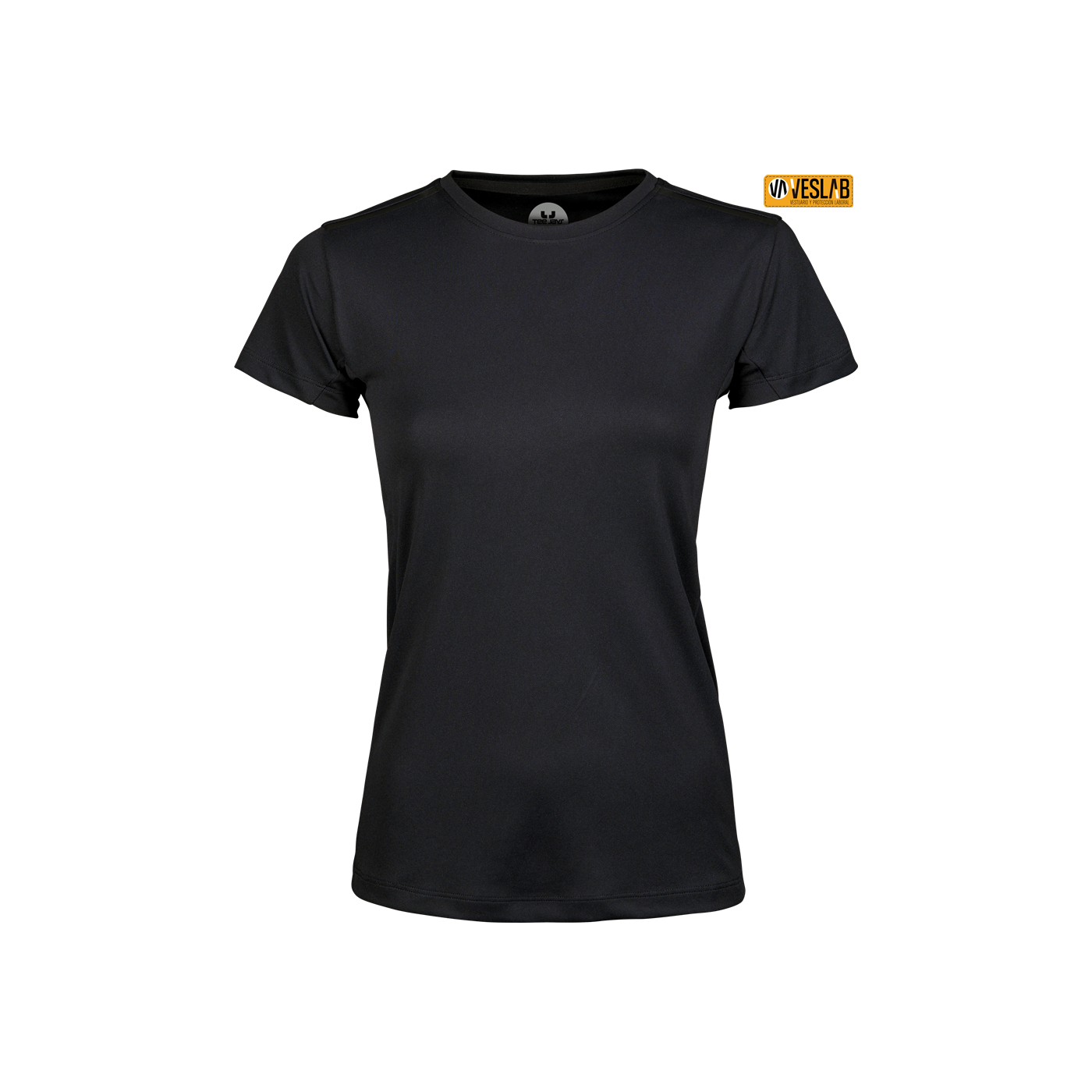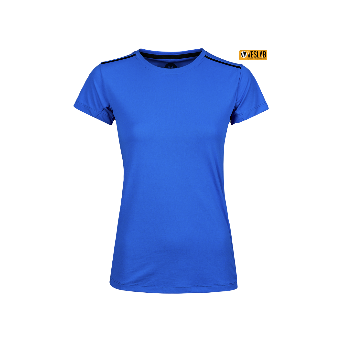 Samarreta transpirable entallada per dona i lleugera d'estil esportiu. Aborbeu la humitat, proporcionant un assecat ràpid del seu teixit, mantenint el cos sec durant l'activitat laboral o esportiva.