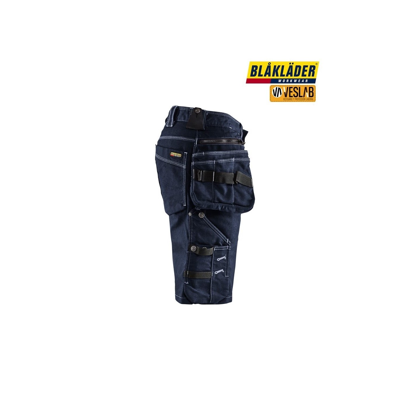 Pantalons curts de treball amb butxaques penjades per a treballadors de la indústria reforçats a CORDURA® Denim stretch, amb panells de teixit elàstic a l'entrecuix, que ofereixen la màxima comoditat i un rang de moviment òptim.