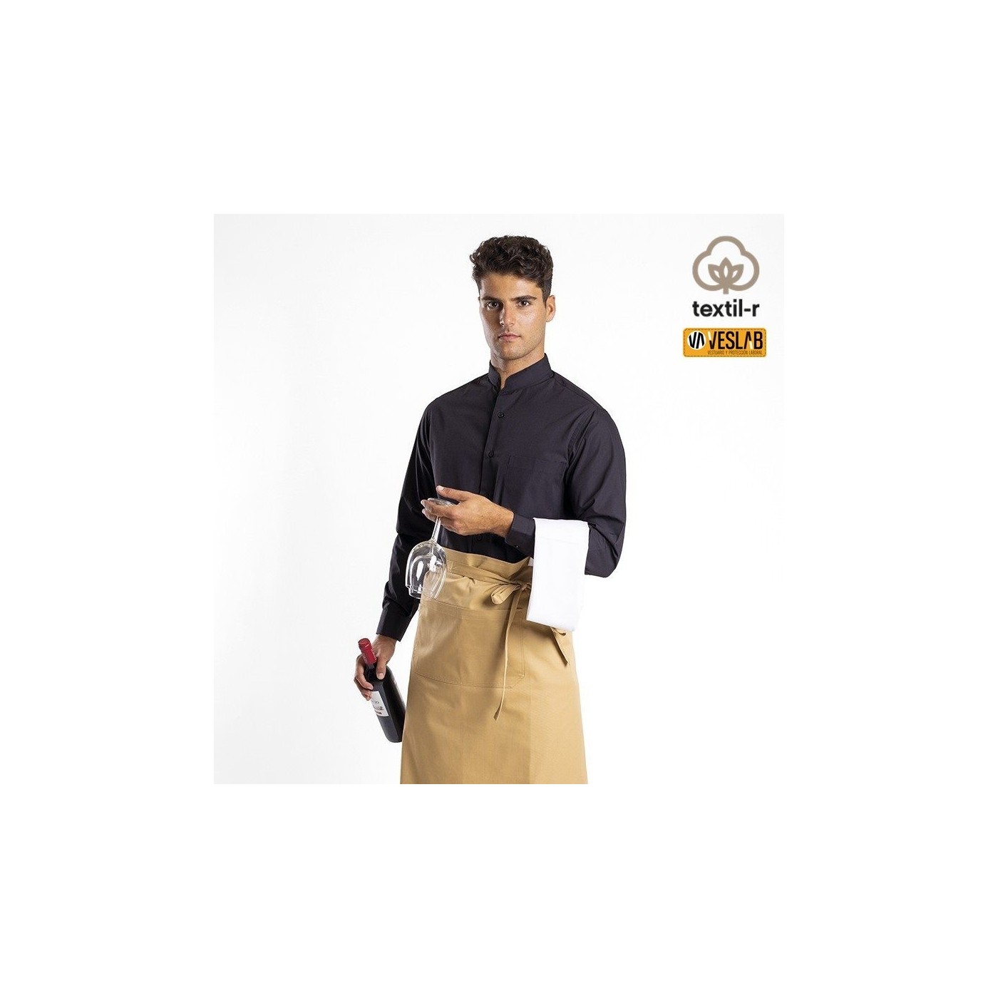 Camisa d'home de màniga llarga amb coll mao tipus xinès i butxaca al pit esquerre. Doble trau per bessó, 2 botons per a ajustament de puny, costura francesa en sisa i carregades a costats. És una camisa laboral de gran qualitat ideal per combinar amb la roba d'hostaleria per a cambrer, servei de sala, cafeteries, comerços, etc.