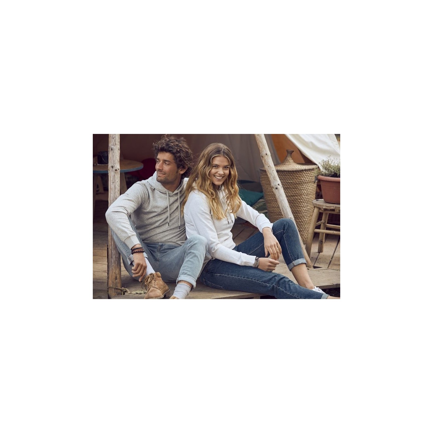 Dessuadora d'estil juvenil amb caputxa de cotó orgànic i polièster reciclat. Dues butxaques frontals amb cremalleres YKK. Cordó en caputxa amb detall de metall per a un look contemporani. CVC French Terry, coll herringbone i canalé a la cintura i punys. Canal elàstic 1x1. Adaptat per a auriculars.