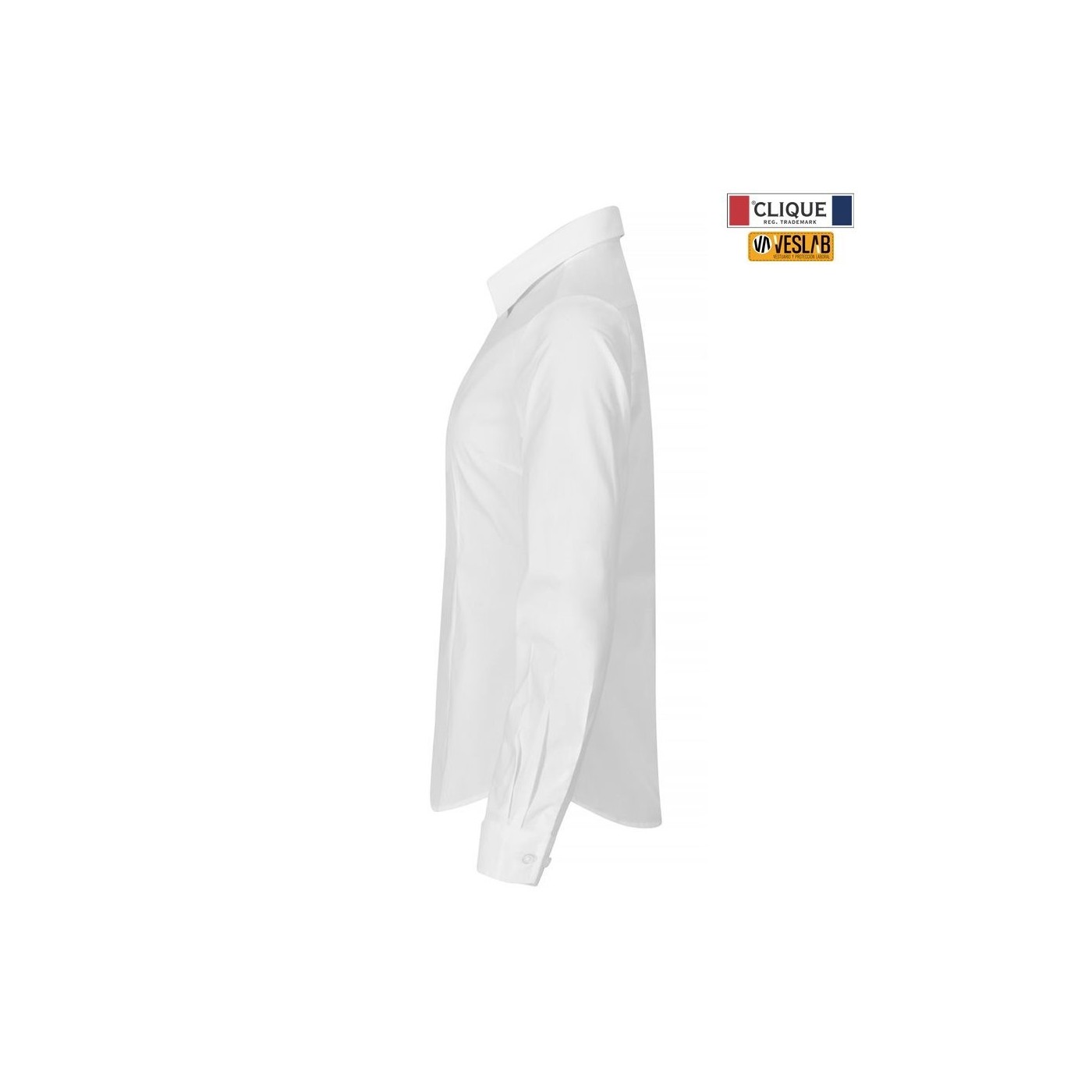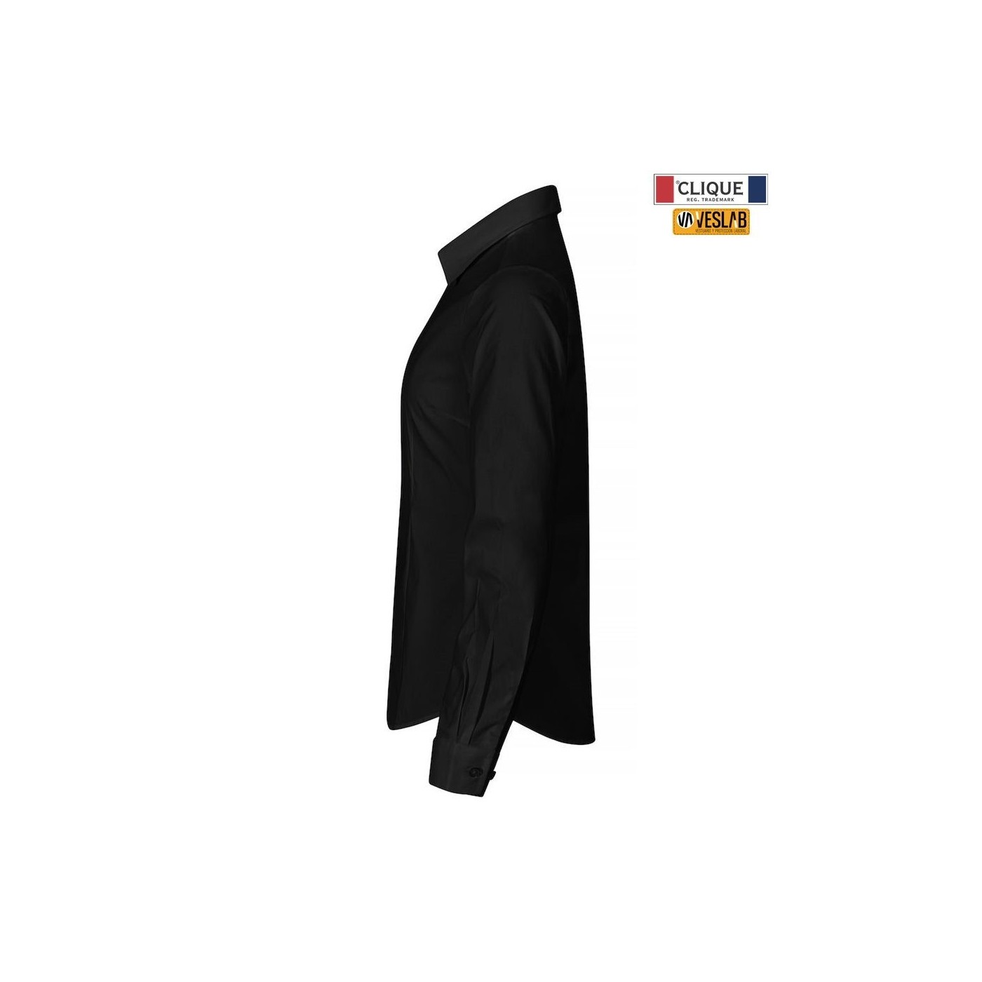 Camisa elàstica de màniga llarga amb botons. Botó d'ajustament a la màniga. La versió per a home ve amb una butxaca al pit. Canesú a l'esquena.