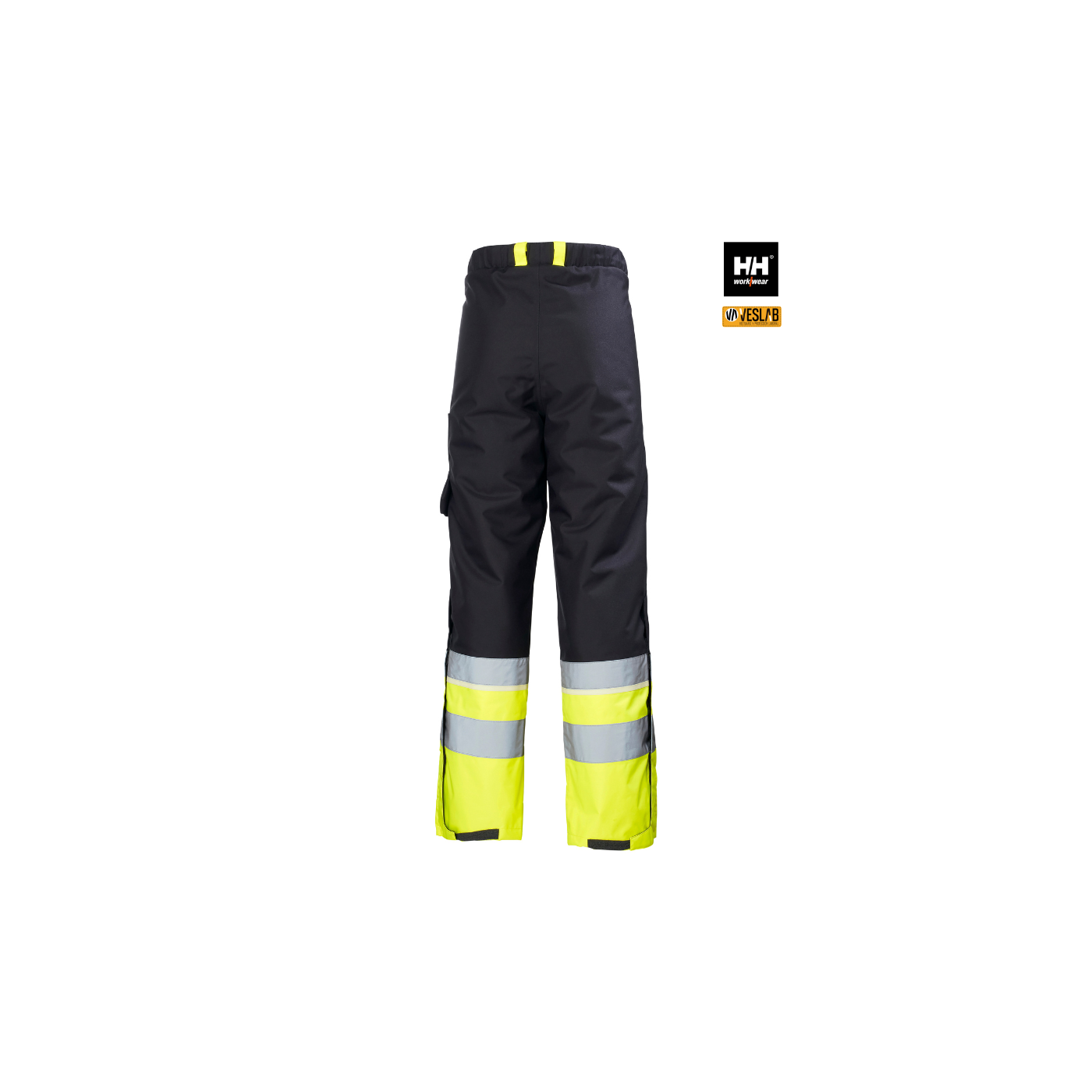 Pantalons d'hivern d'alta visibilitat de classe 1 UC-ME de Helly Hansen, dissenyats amb tecnologia UC-ME per millorar la visibilitat en condicions de poca llum. Compten amb cintura elàstica, butxaca a la cuixa, cremallera fins al genoll i tires fotoluminescents Vizlite, que es carreguen en 10 minuts i ofereixen fins a 8 hores d'autonomia. Ideals per a activitats en entorns foscos.