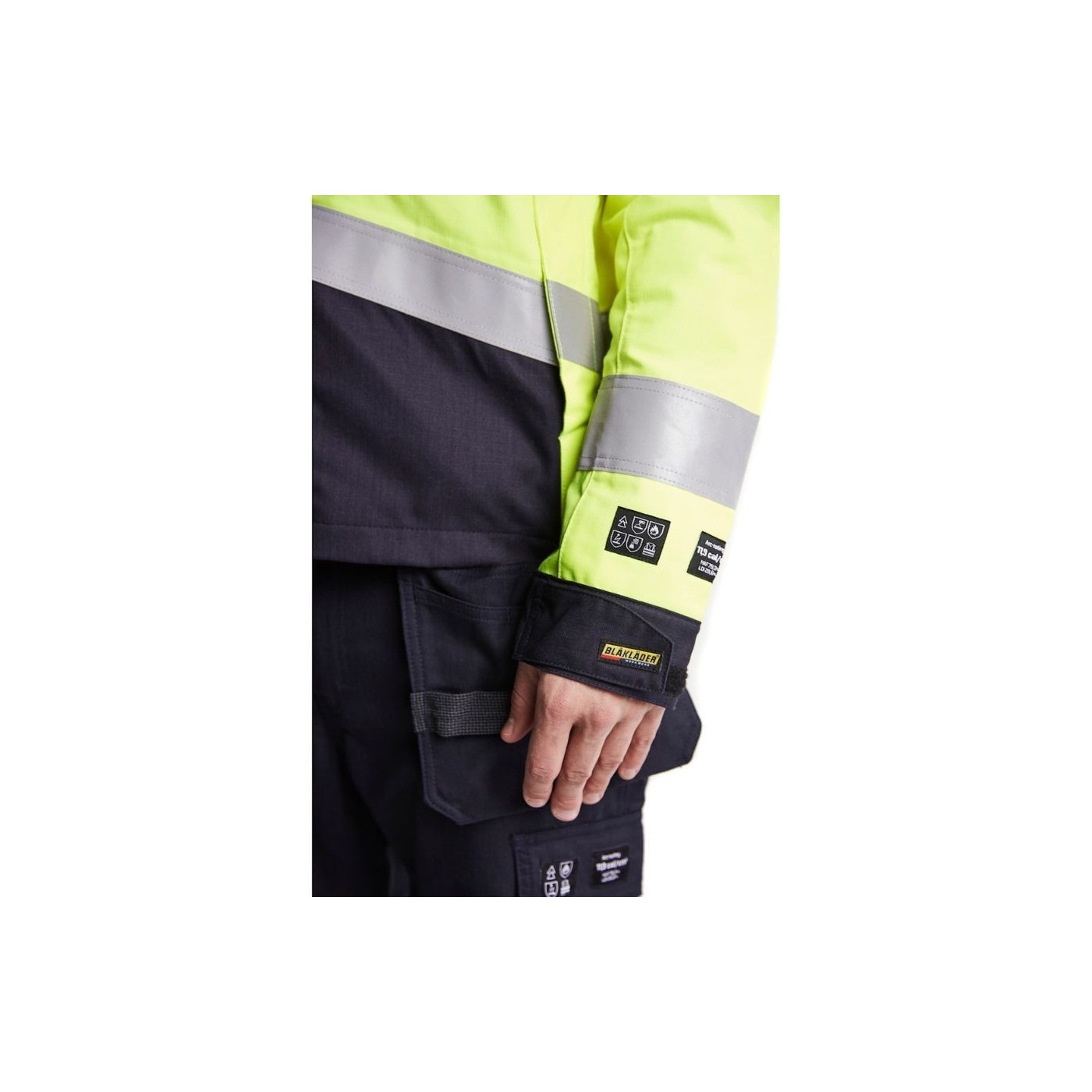 La jaqueta multinorma inherent d'alta visibilitat ofereix protecció avançada amb teixit retardant de flama, resistent a l'aigua i la brutícia. Certificada conforme a diverses normatives de seguretat, inclou butxaques funcionals, cintes reflectants i un disseny ajustable per a més comoditat i visibilitat. Ideal per a entorns de treball exigents.