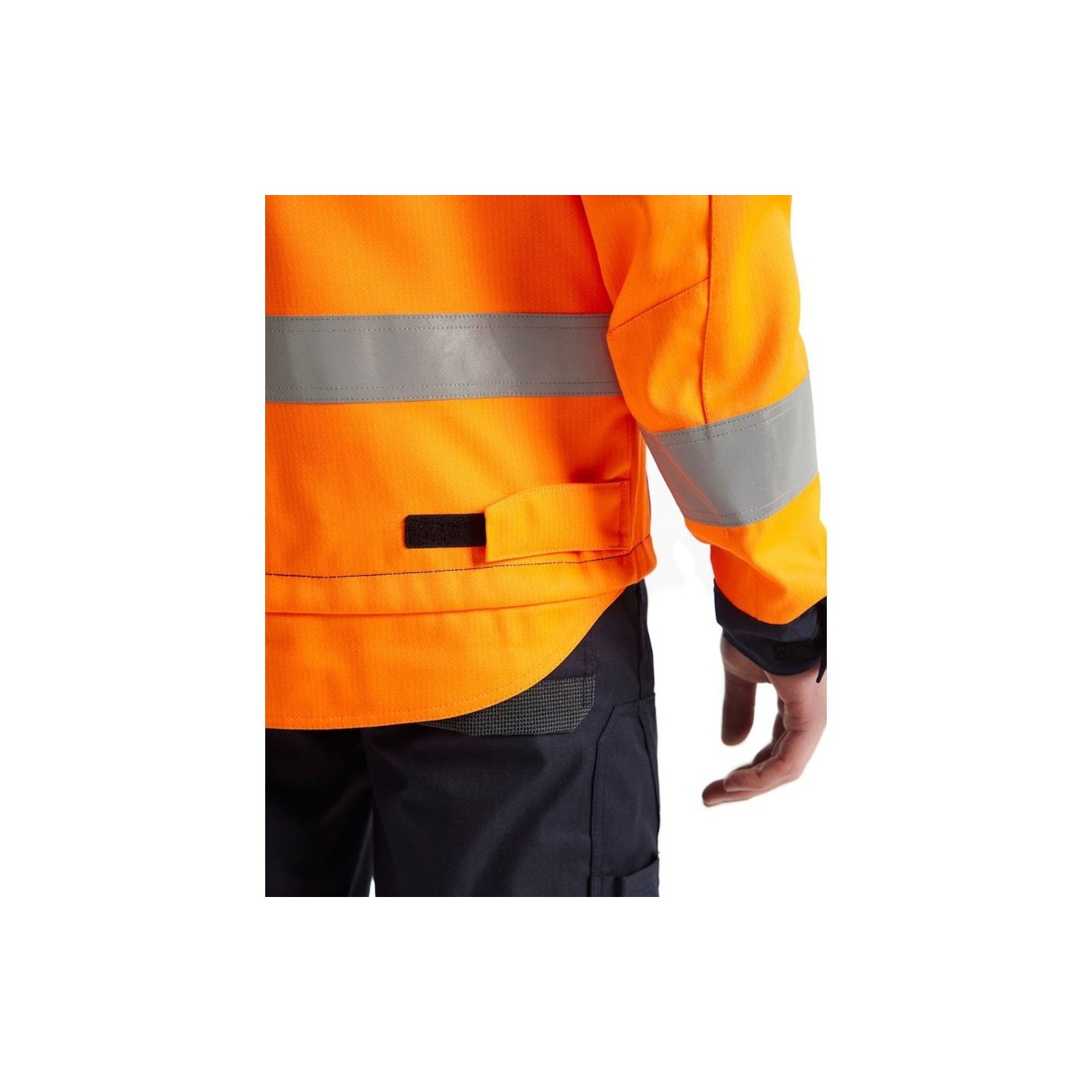 - Alta visibilitat en color taronja: optimitza la seguretat en ambients de baixa visibilitat gràcies al seu color brillant i les cintes reflectants retardants de flama, cosides amb costures dobles.