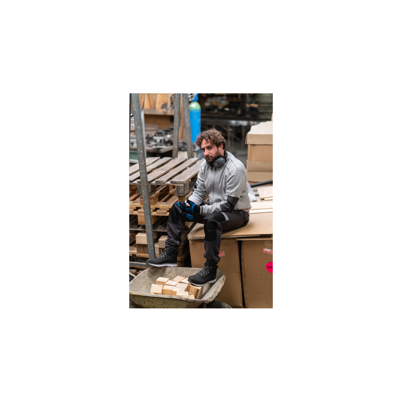 Pantaló de treball de teixit pelfa amb extremitats elàstiques i reforços d'Oxford als genolls. Compte amb una banda decorativa segmentada i es tracta del clàssic xandall esportiu en versió treball. Destinat als qui prefereixen tenir la màxima comoditat, cas de professionals de sectors com: