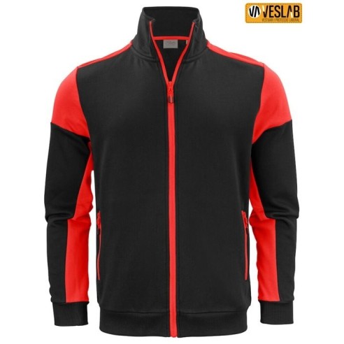 Presentem una elegant i funcional jaqueta de treball d'estil dessuadora, amb un disseny bicolor que ressalta gràcies a la cremallera en contrast a la part frontal i les butxaques davanteres. A més, compta amb una cinta que aporta un toc addicional al coll i detalls de canalé 2x2 a les mànigues i la vora inferior.
