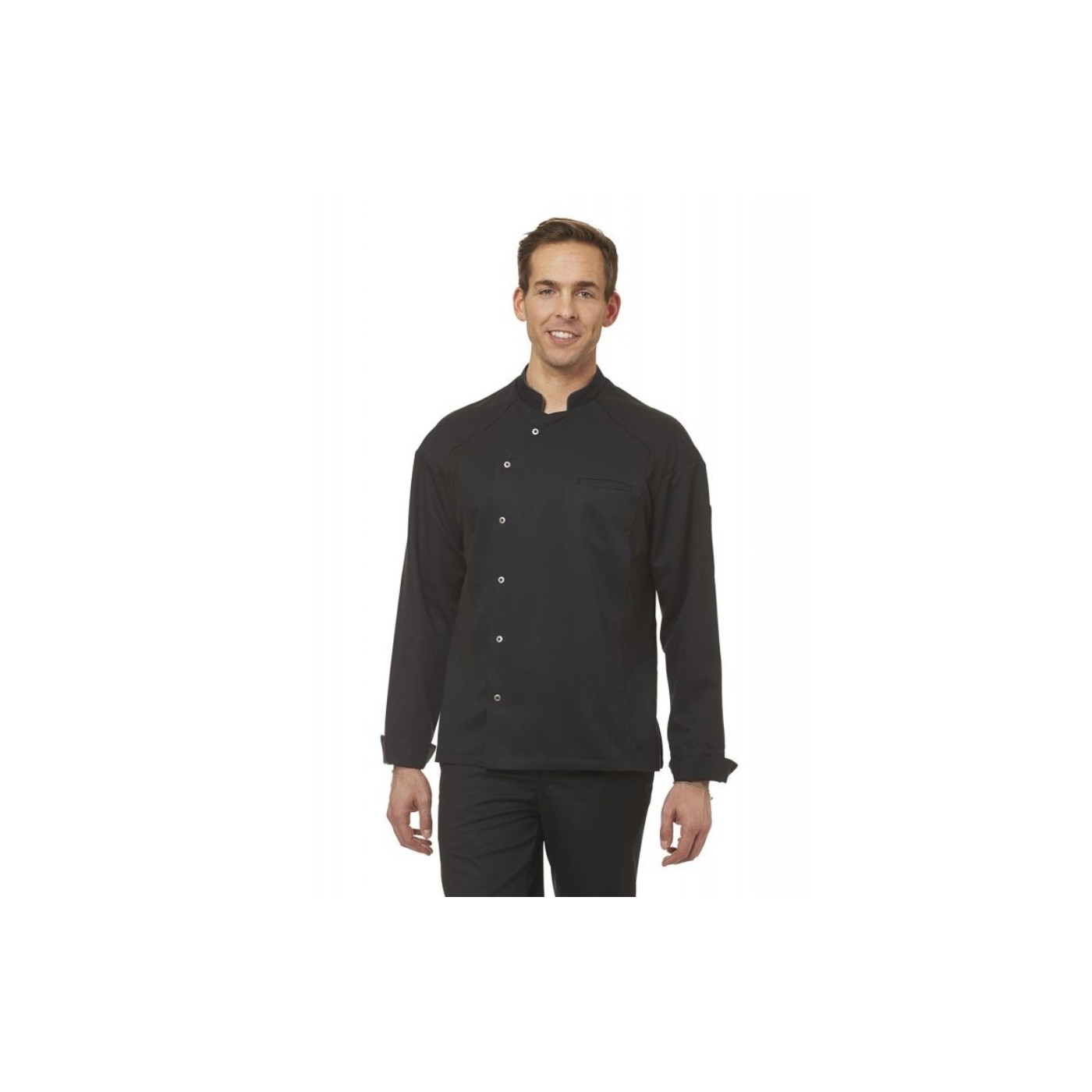 La jaqueta de cuina unisex té màniga llarga i compta amb una butxaca al pit i una altra a la màniga, cosa que et permet tenir a mà petits utensilis o eines de treball.