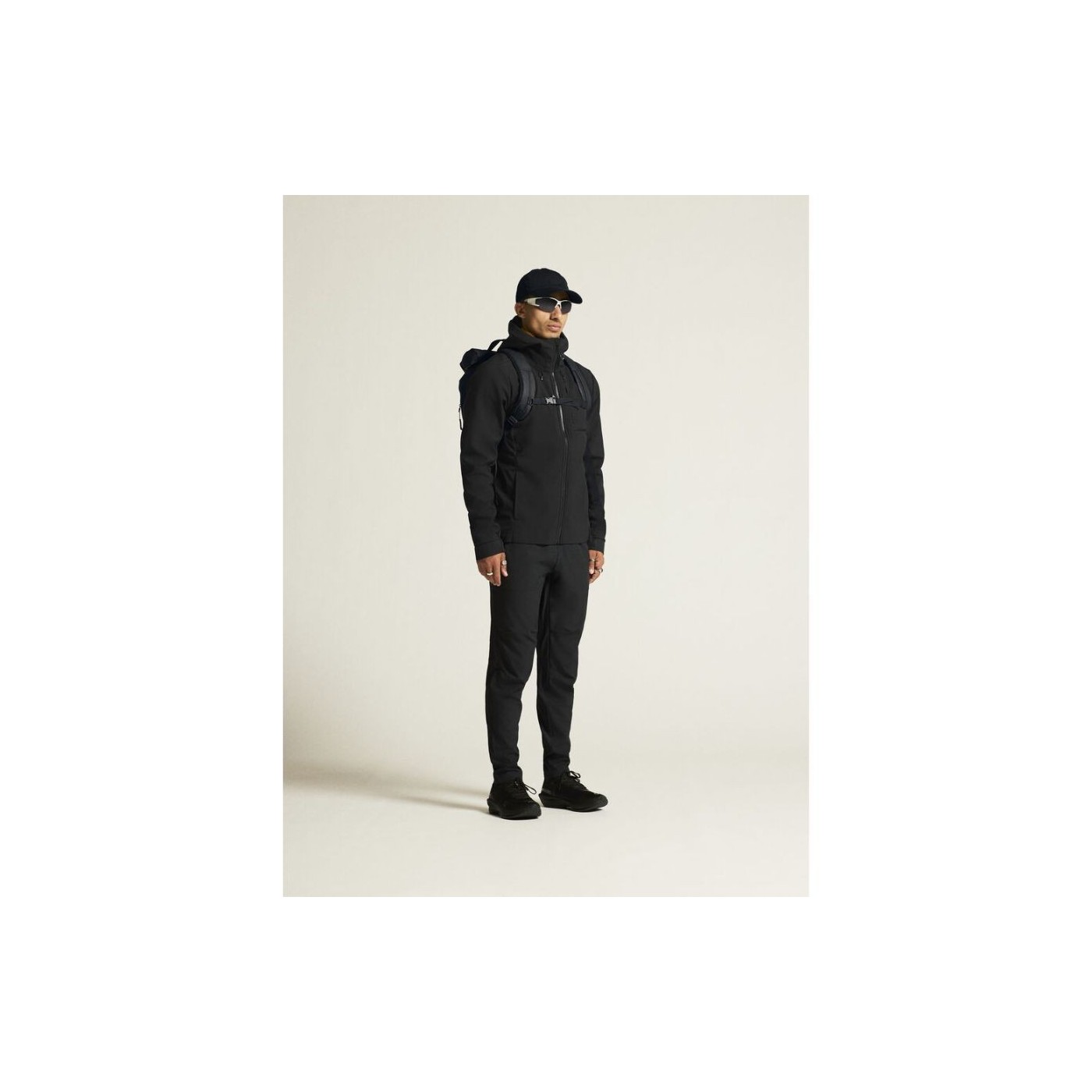 - Cortavent i impermeable: El teixit softshell de gran elasticitat amb interior raspallat t'ofereix protecció eficaç contra el vent i la pluja lleugera.