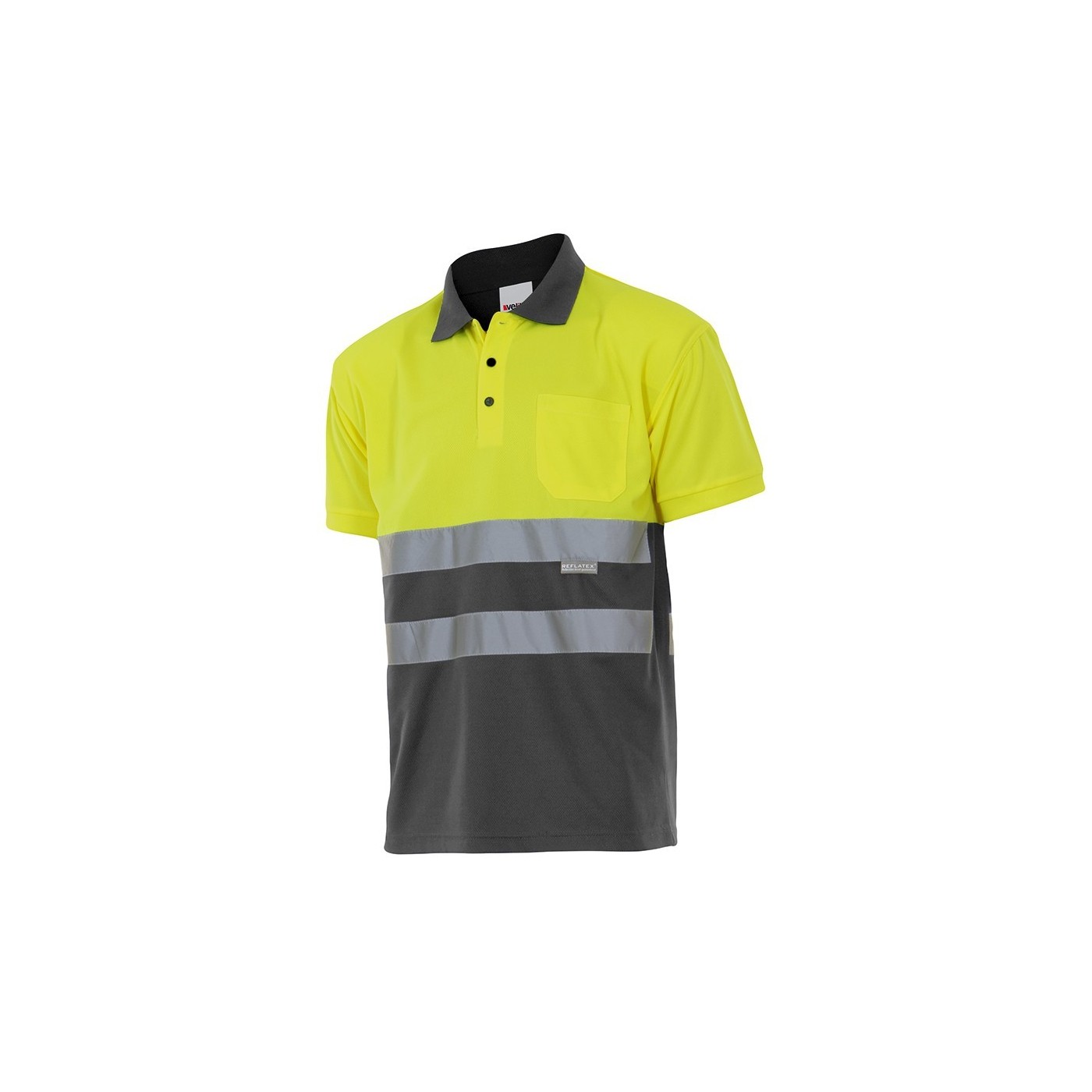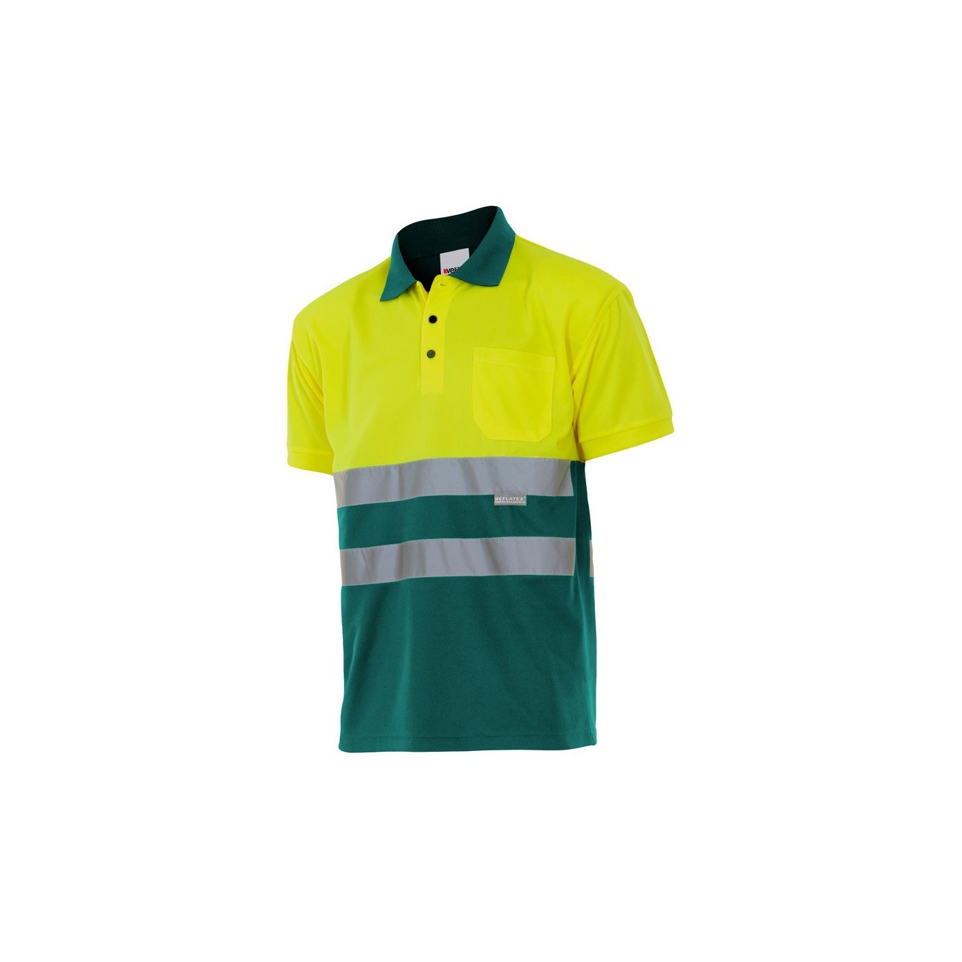 Polo bicolor d'alta visibilitat de màniga curta realitzat en teixit transpirable.