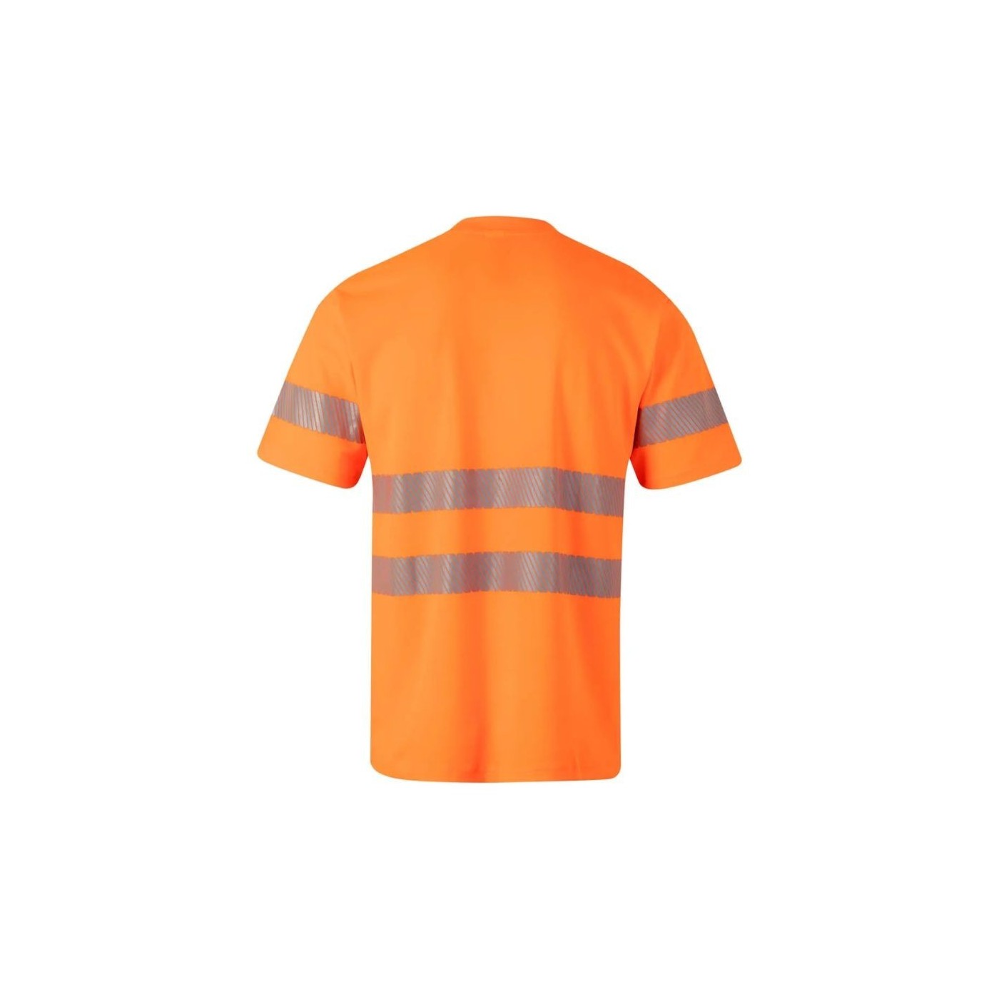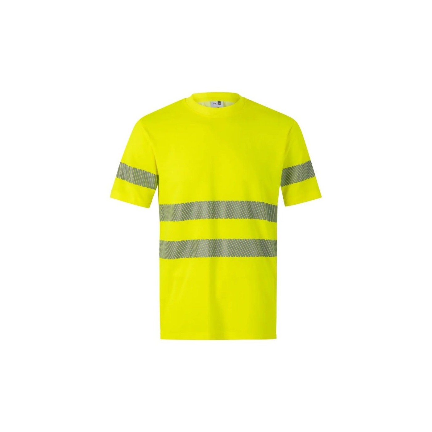 Samarreta d'alta visibilitat amb coll rodó de canalé. Destaca per un teixit fresc de cotó amb cintes reflectants, segmentades termofixades, en tors i mànigues que permeten una llibertat de moviments total en no estar cosides.