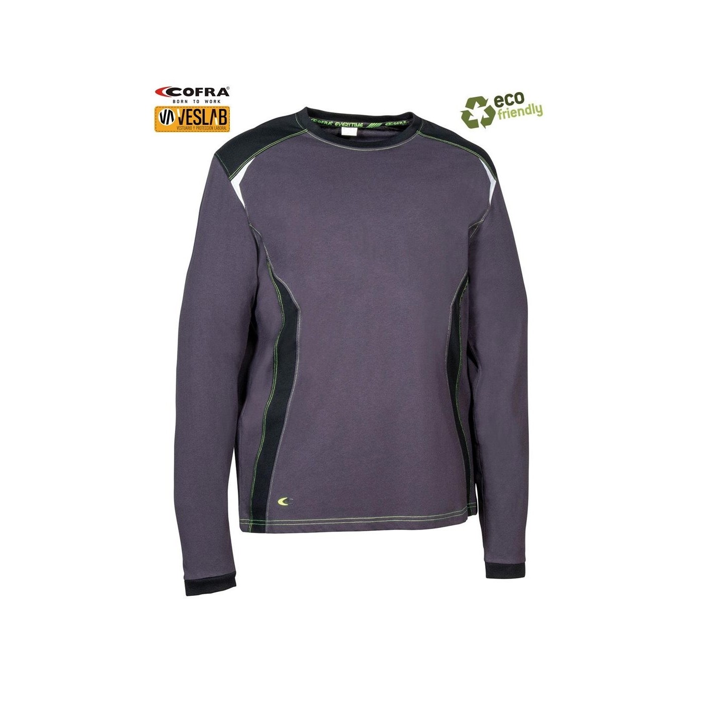 Samarreta bicolor de teixit 60% algodó - 40% polièster reciclat PET i insercions reflectants, a joc amb diverses de les col·leccions de vestuari laboral que ofereix Cofra per poder conjuntar la uniformitat de la seva empresa.