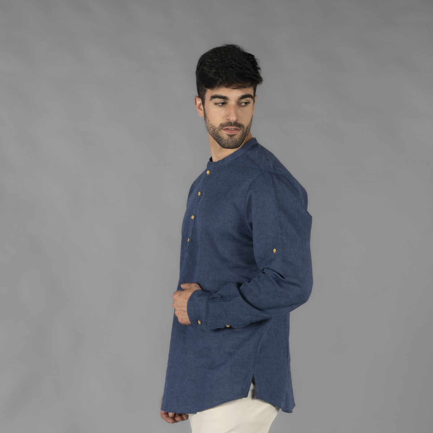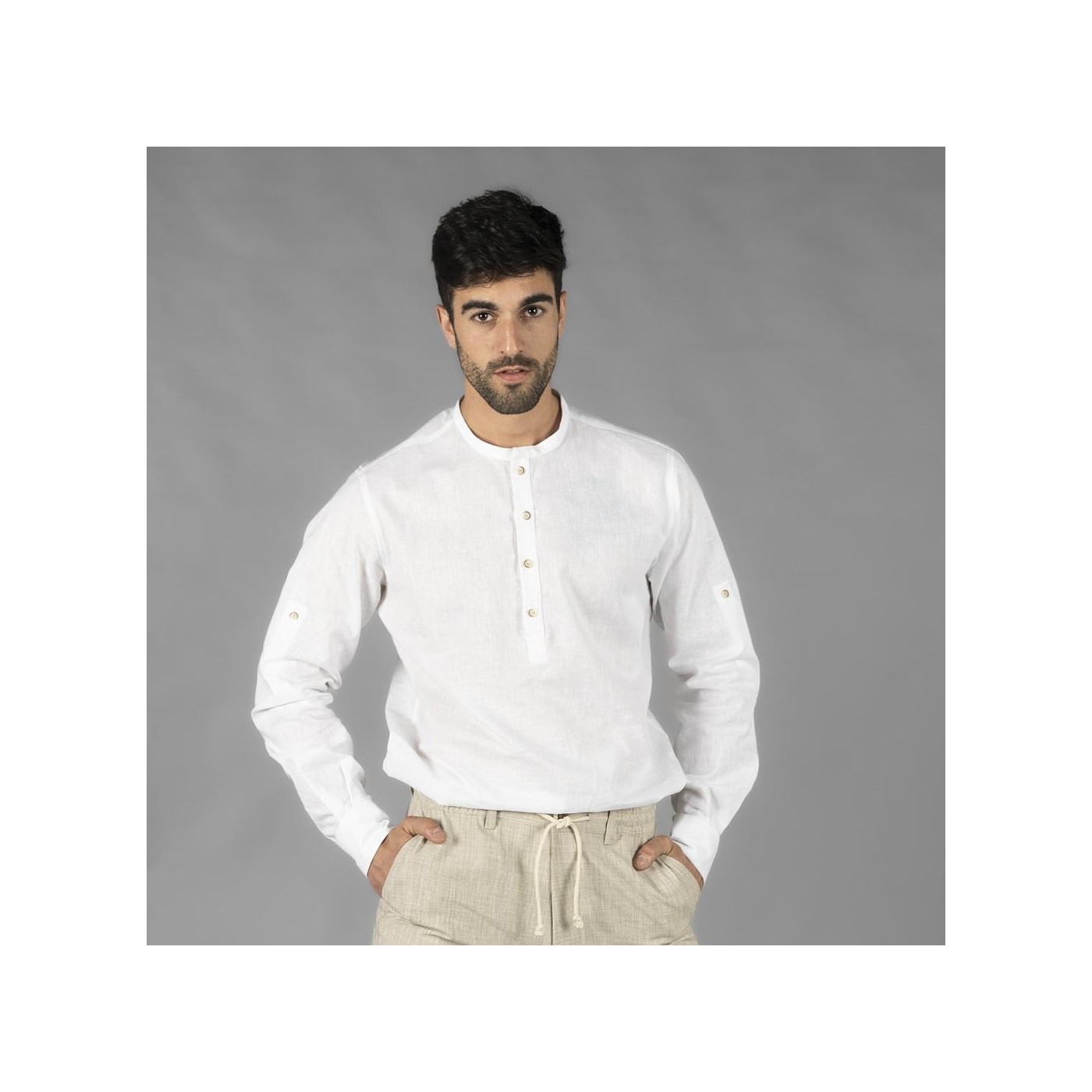 Elegant alhora que informal camisa de coll mao per a home de màniga llarga i remangable, mitjançant botó de fixació. Confeccionada a Plana 55% Lli i 45% Cotó. Ideal per a cambrers, personal d'hostaleria i qualsevol activitat o negoci que vulgui aportar una imatge corporativa distintiva.