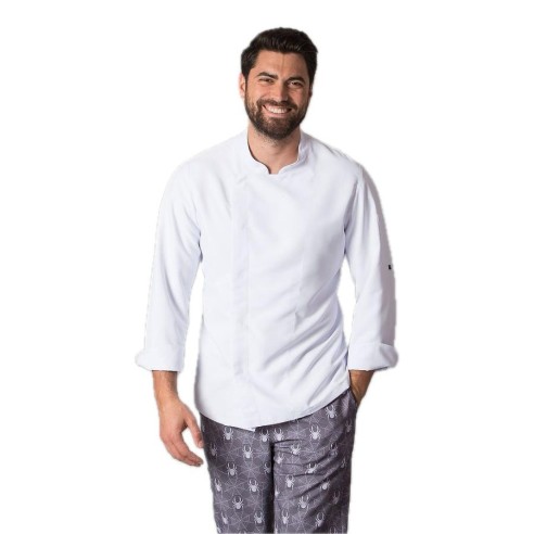 S'asseca ràpidament, sense necessitat de planxar i repel·leix els cabells i els cabells de mascotes. A més, incorpora teixit tècnic AEROSILVER a l'esquena. Aquesta peça és perfecta com uniforme per a cuiners i xefs a la indústria de l'hostaleria, restauració i cuina en general, així com per a treballadors del comerç.