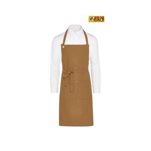 El davantal de lona amb pitera, dissenyat amb traus i reblons de llautó envellit, combina elegància i funcionalitat. Disponible en colors moderns, aquest davantal és perfecte tant per a equips professionals com per a ús domèstic. Amb una pràctica butxaca i una longitud òptima que permet una gran llibertat de moviment, aquest davantal es distingeix per la seva resistència i facilitat de cura, es pot rentar a 60°C. El collaret ajustable a través de la trau de metall de llautó envellit brinda una aparença cuidada i sofisticada.