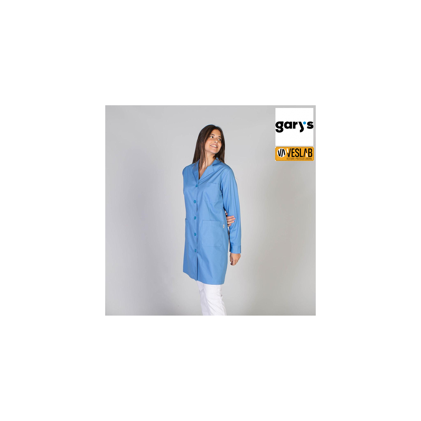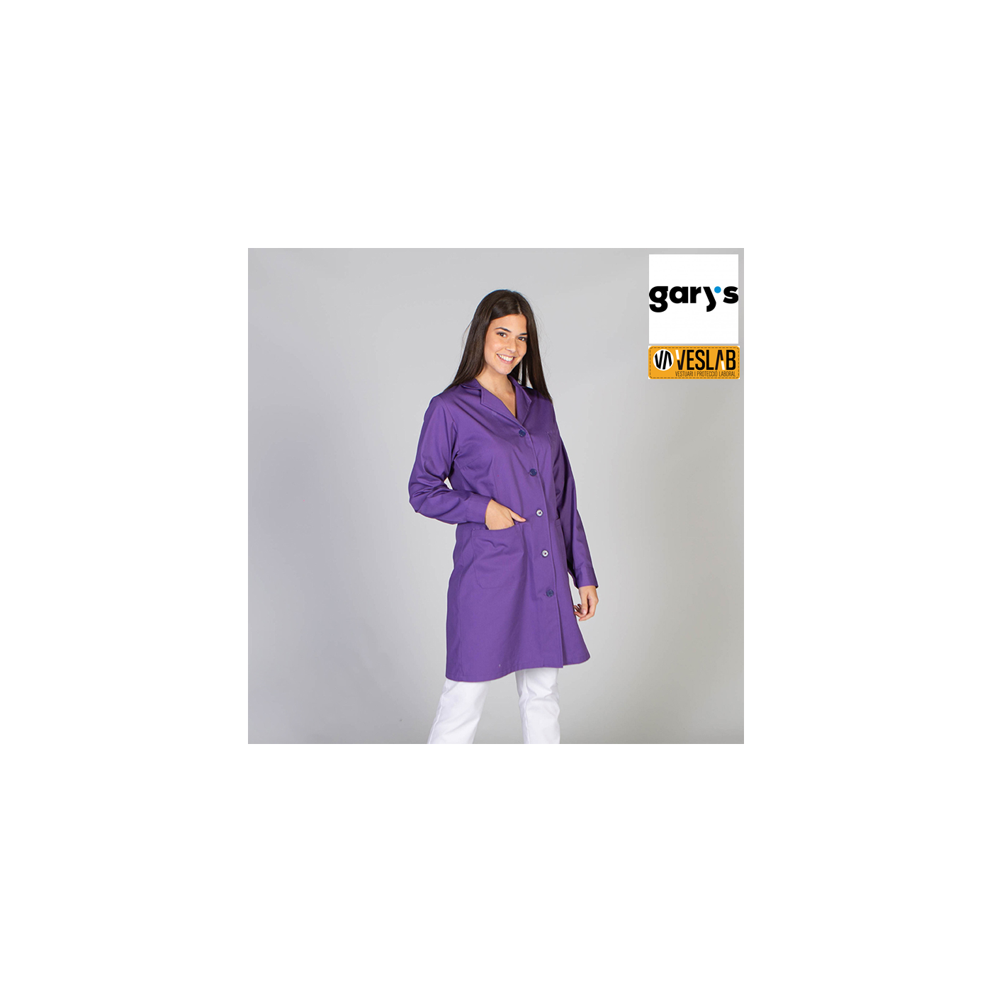 La bata de màniga llarga per a dona de Gary's es caracteritza pel seu elegant disseny amb tanca de botons de pastilla, coll amb solapa i sense punys a les mànigues. Amb un tall semi ajustat, pinces al front i l'esquena, aquesta bata s'adapta perfectament a la silueta. Ofereix una butxaca al pit esquerre i dues butxaques de pegat a la cintura, brindant un espai convenient per a les teves eines i dispositius essencials.