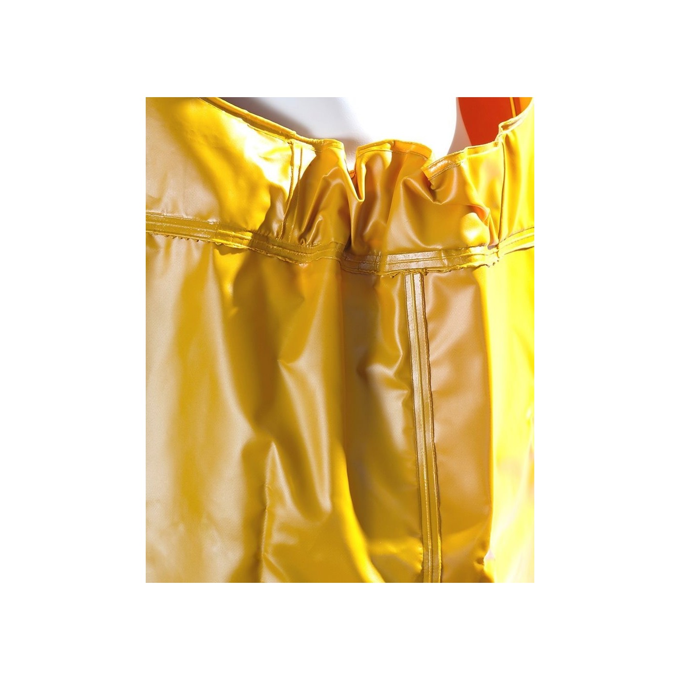 Compta amb reforç frontal intern, tirants desmuntables i ajustables de PVC, costures HF impermeables i butxaca al pit amb tapeta. El teixit K20 (84% PVC - 16% polièster) ofereix 430 g/m² de protecció i resistència.