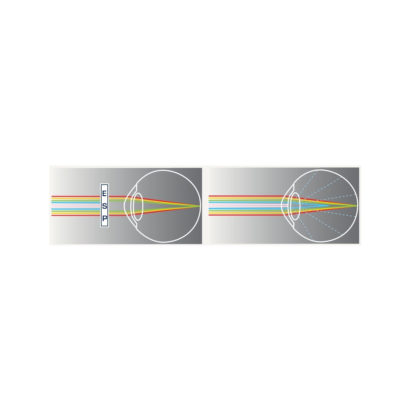 El tractament ESP filtra: • el 57% de la llum blava • transmet el 64% del visible • el 99,99% dels UVA / UVB