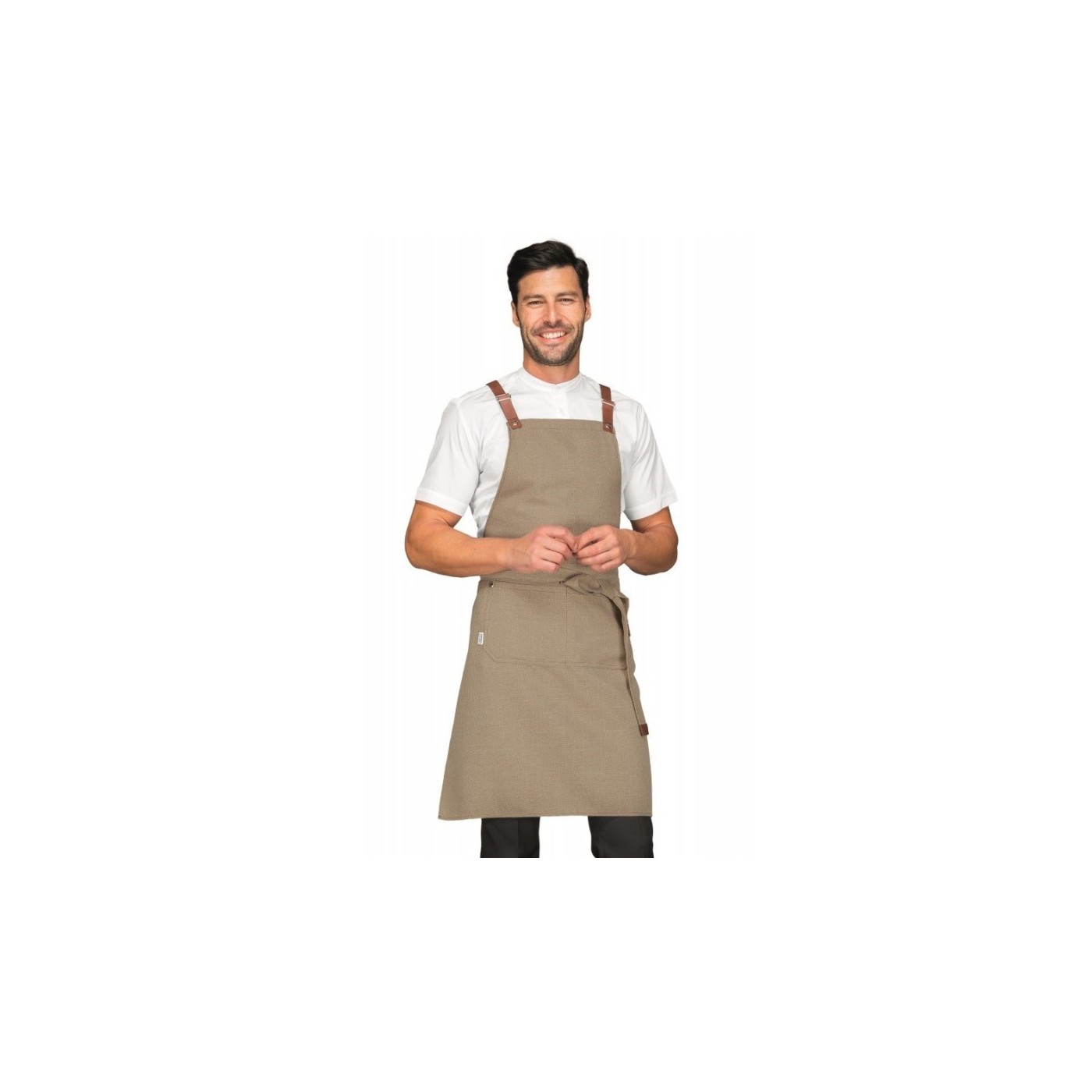 Elegant i alhora funcional davantal peto molt lleuger 100% cotó de 220 grs./m2 de gramatge.