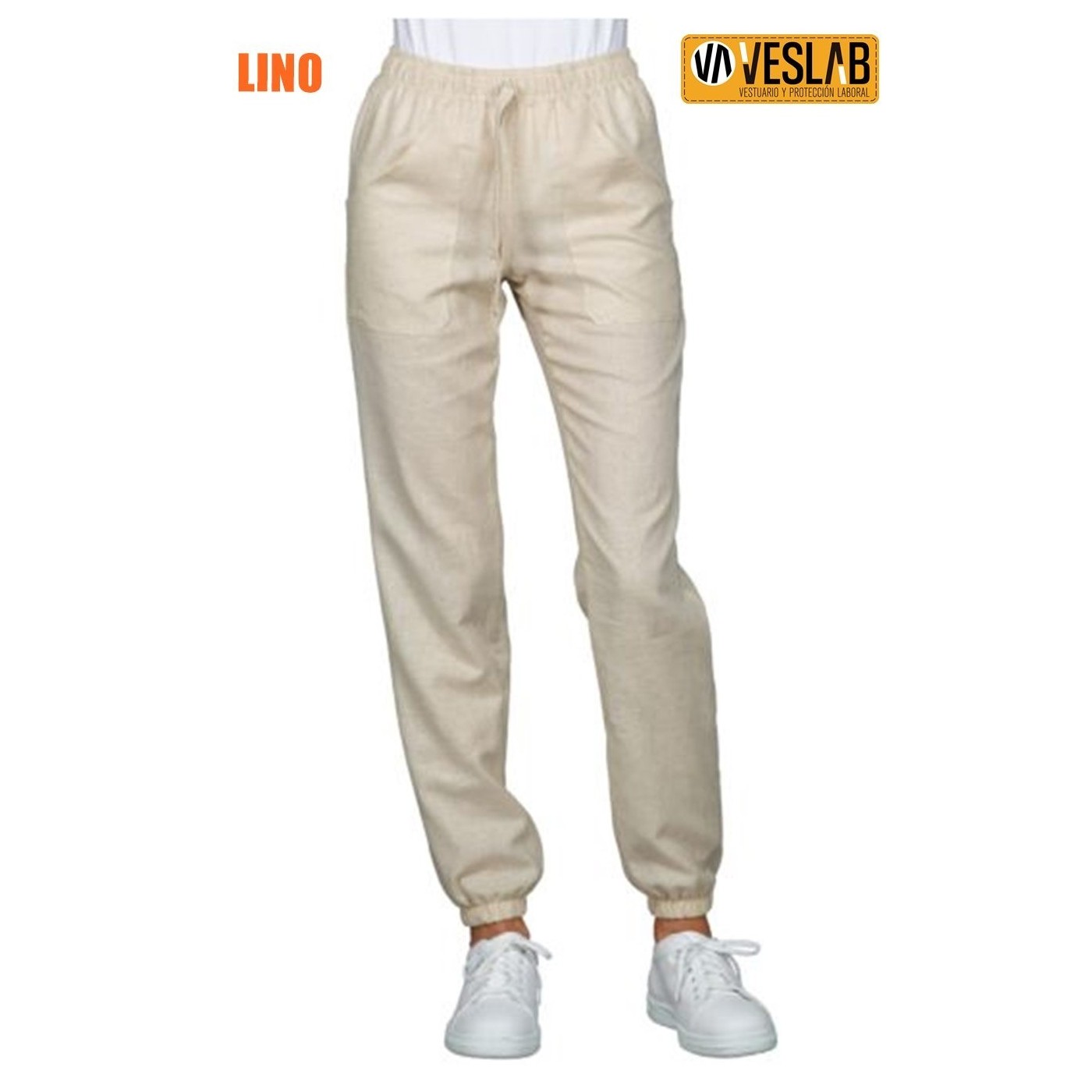 Es tracta d'uns pantalons en teixit de lli amb elàstic a la cintura de tall unisex i goma elàstica als baixos.