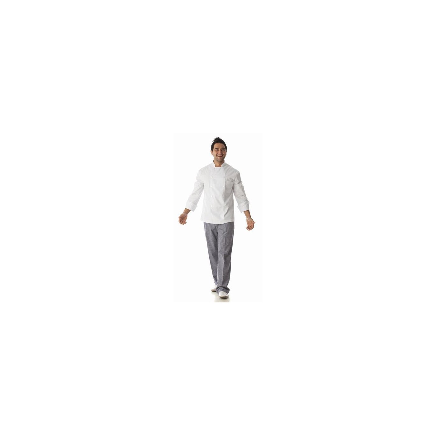 Conjunt bàsic complet per cuiner del fabricant nacional Monza-Obrerol de la seva línia més econòmica, compost de Jaqueta de màniga llarga i Pantaló a quadres blaus.