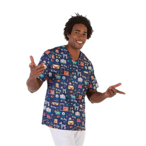 La Casaca per a veterinària estampada de microfibra de Garys combina a la perfecció funcionalitat i estil. Dissenyada per oferir-te comoditat durant tot el dia, aquesta blusa de màniga curta i estil unisexe amb coll de pic es adapta a les teves necessitats amb elegància.