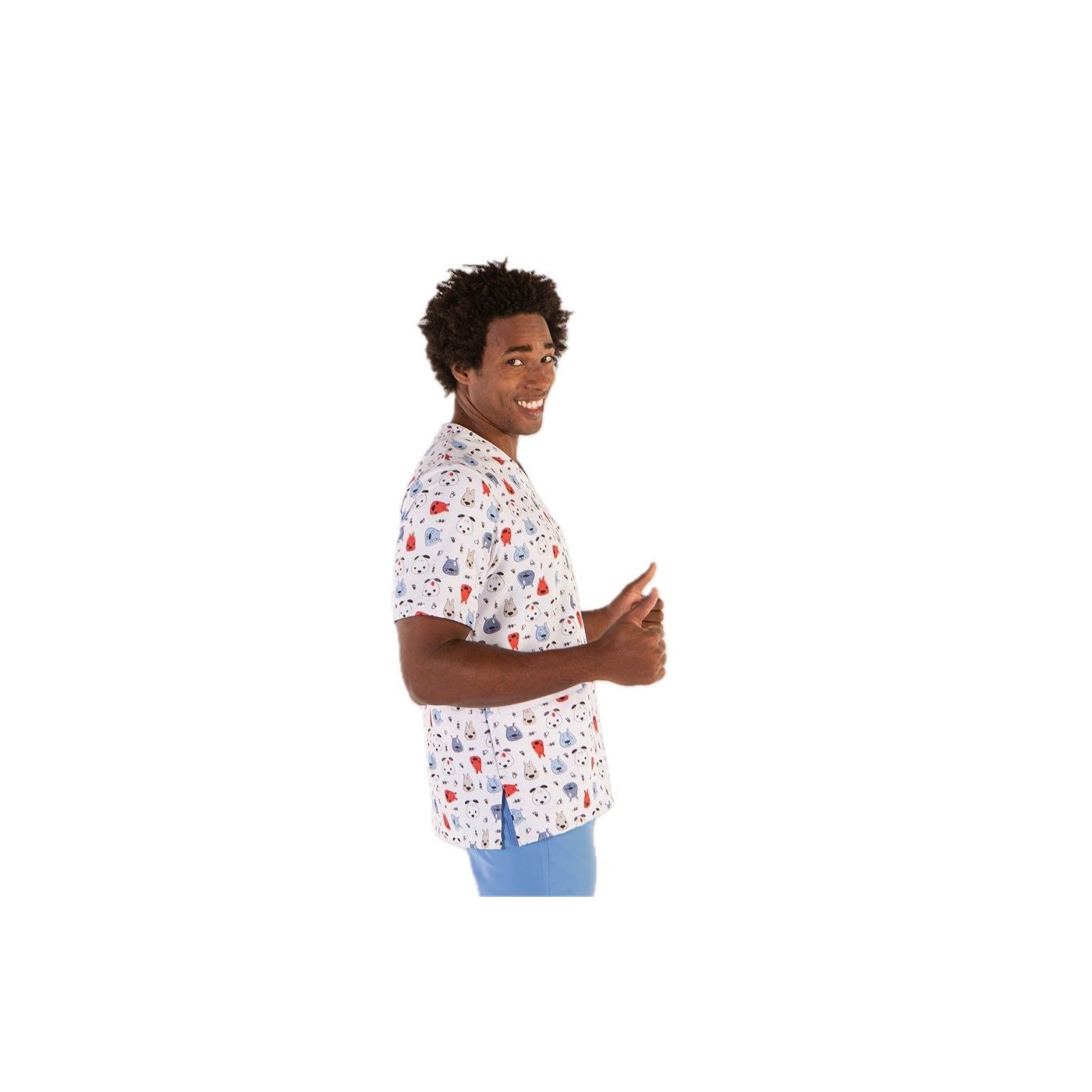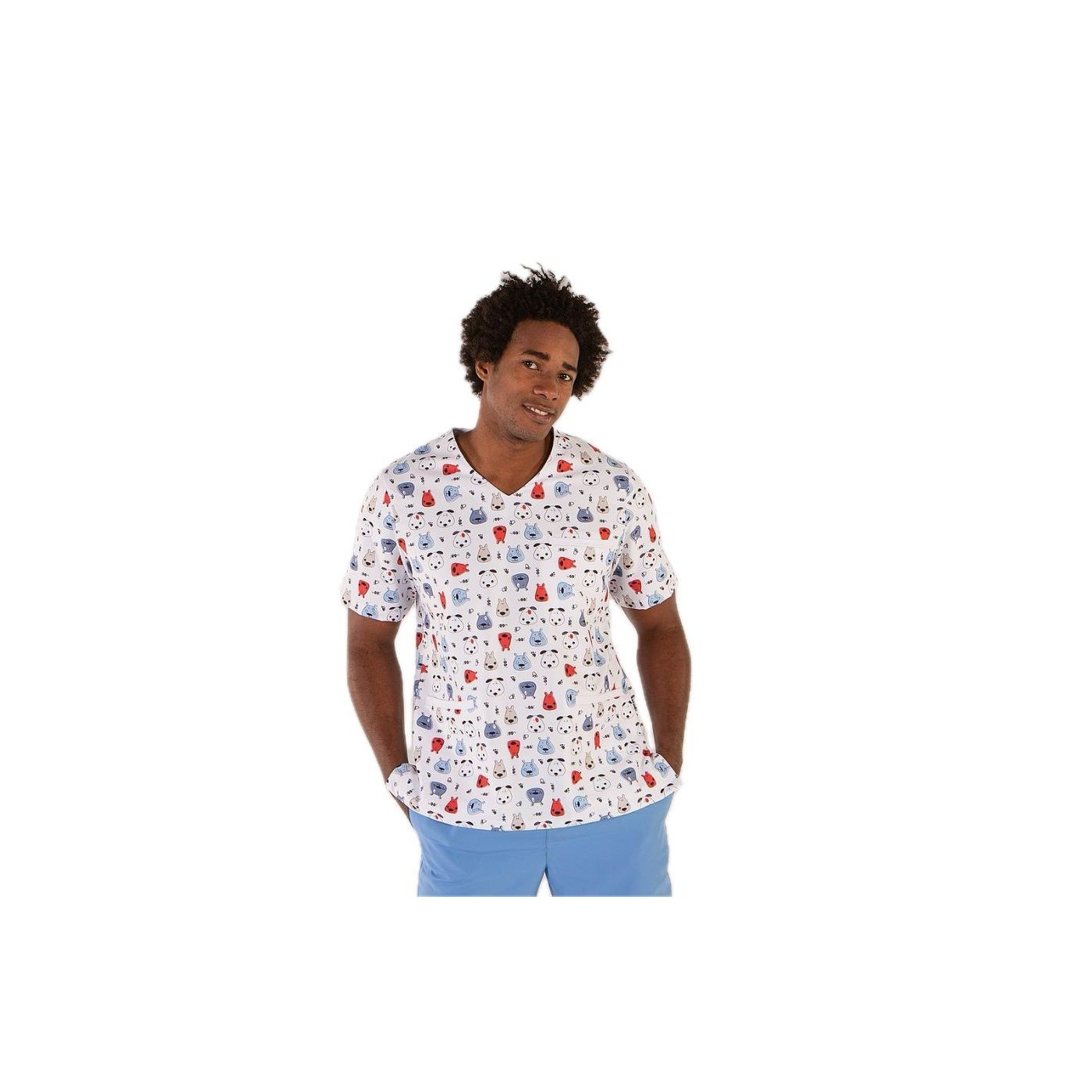 La Casaca per a veterinària estampada de microfibra de Garys combina a la perfecció funcionalitat i estil. Dissenyada per oferir-te comoditat durant tot el dia, aquesta blusa de màniga curta i estil unisexe amb coll de pic es adapta a les teves necessitats amb elegància.