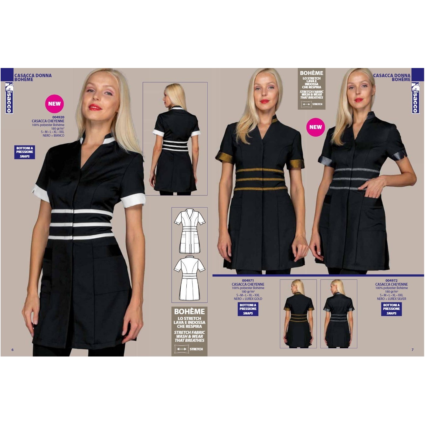 Elegant casaca sanitària o per a serveis de teixit elàstic i amb botons a pressió.