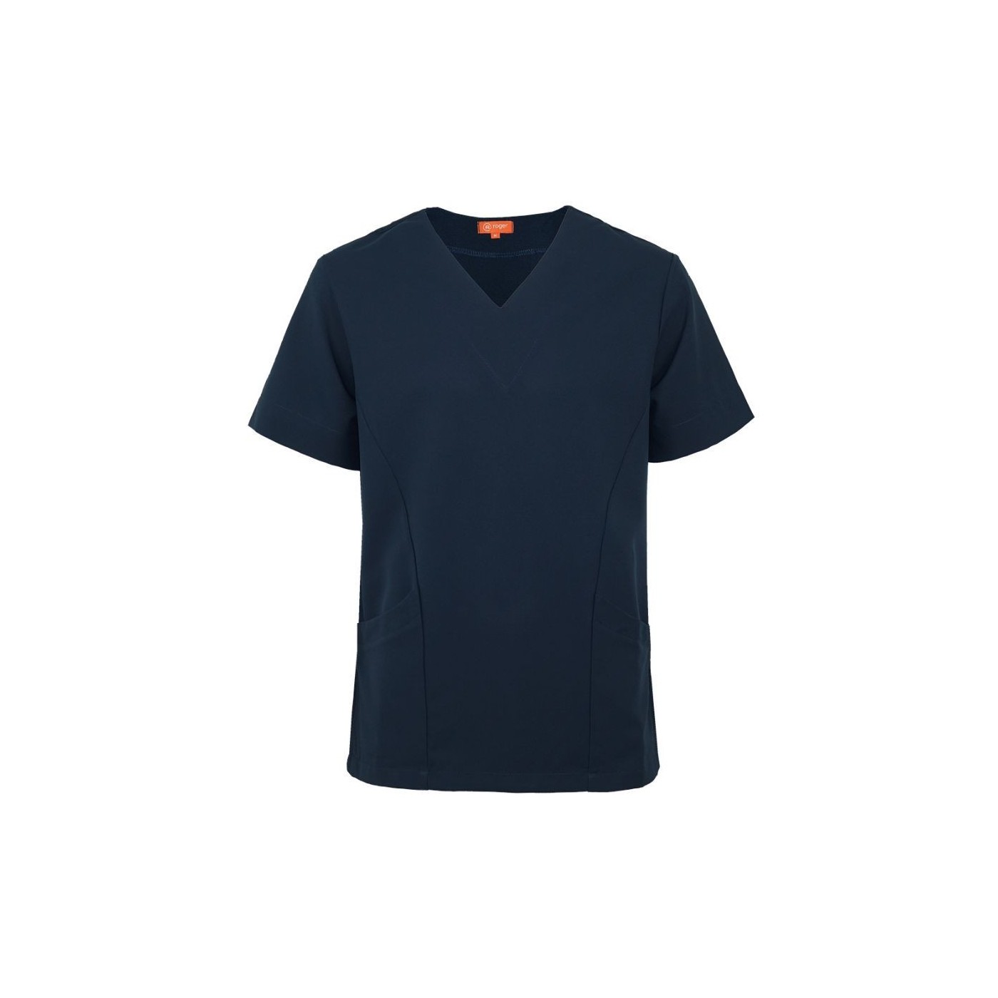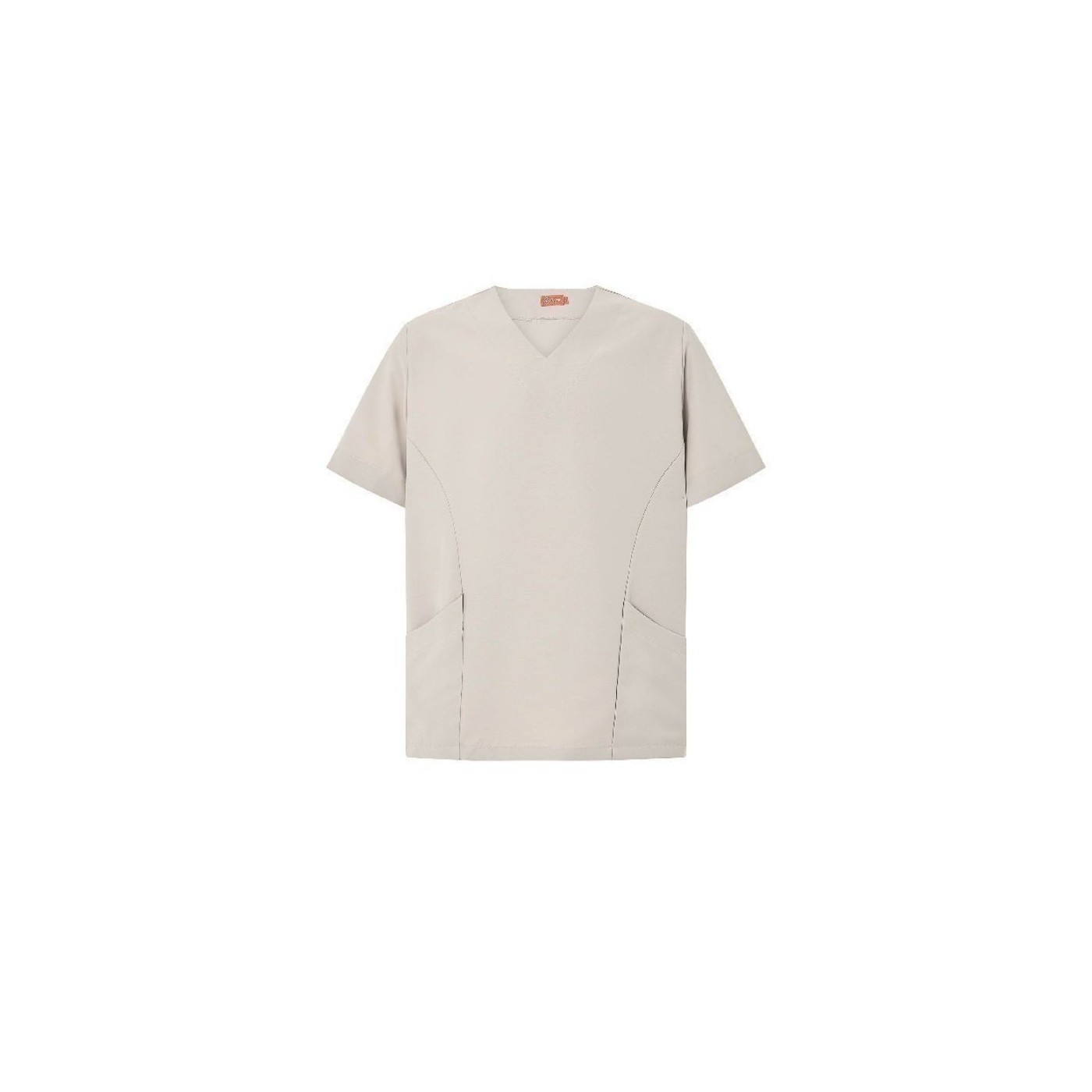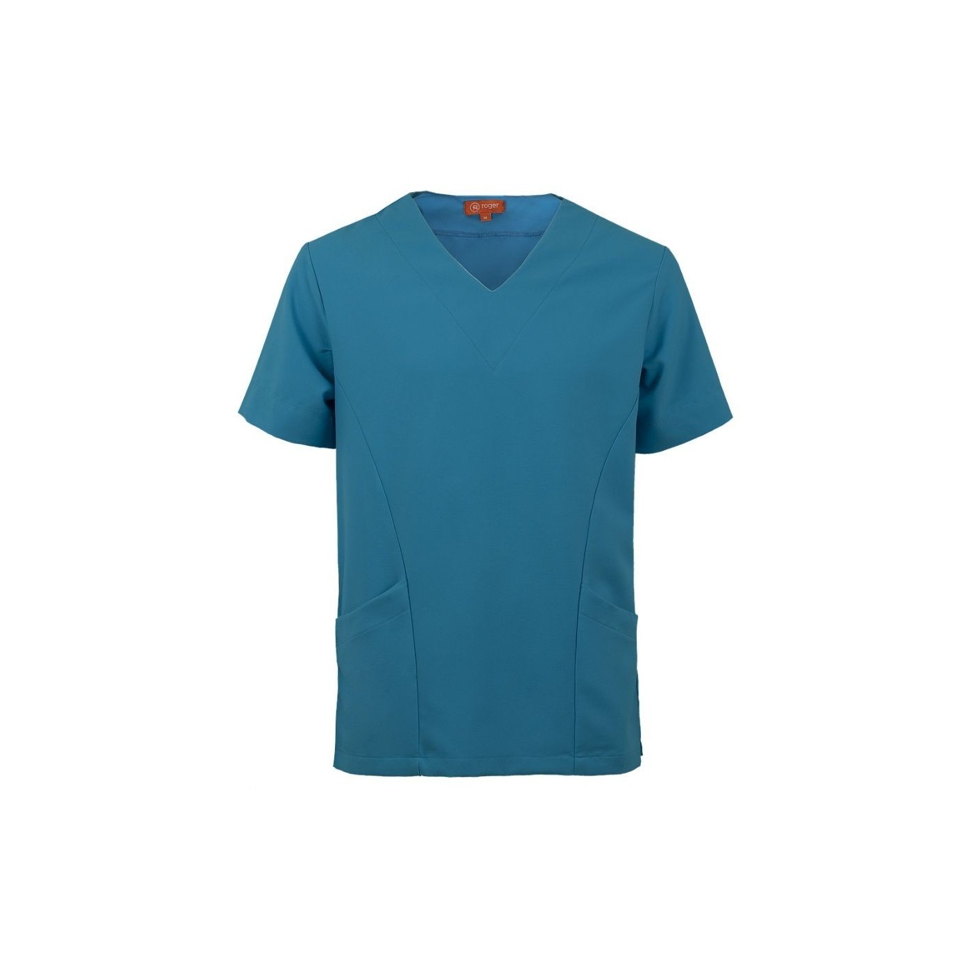 Casaca per a sanitari de microfibra amb escot en pic, tres bolsillos i obertures laterals.