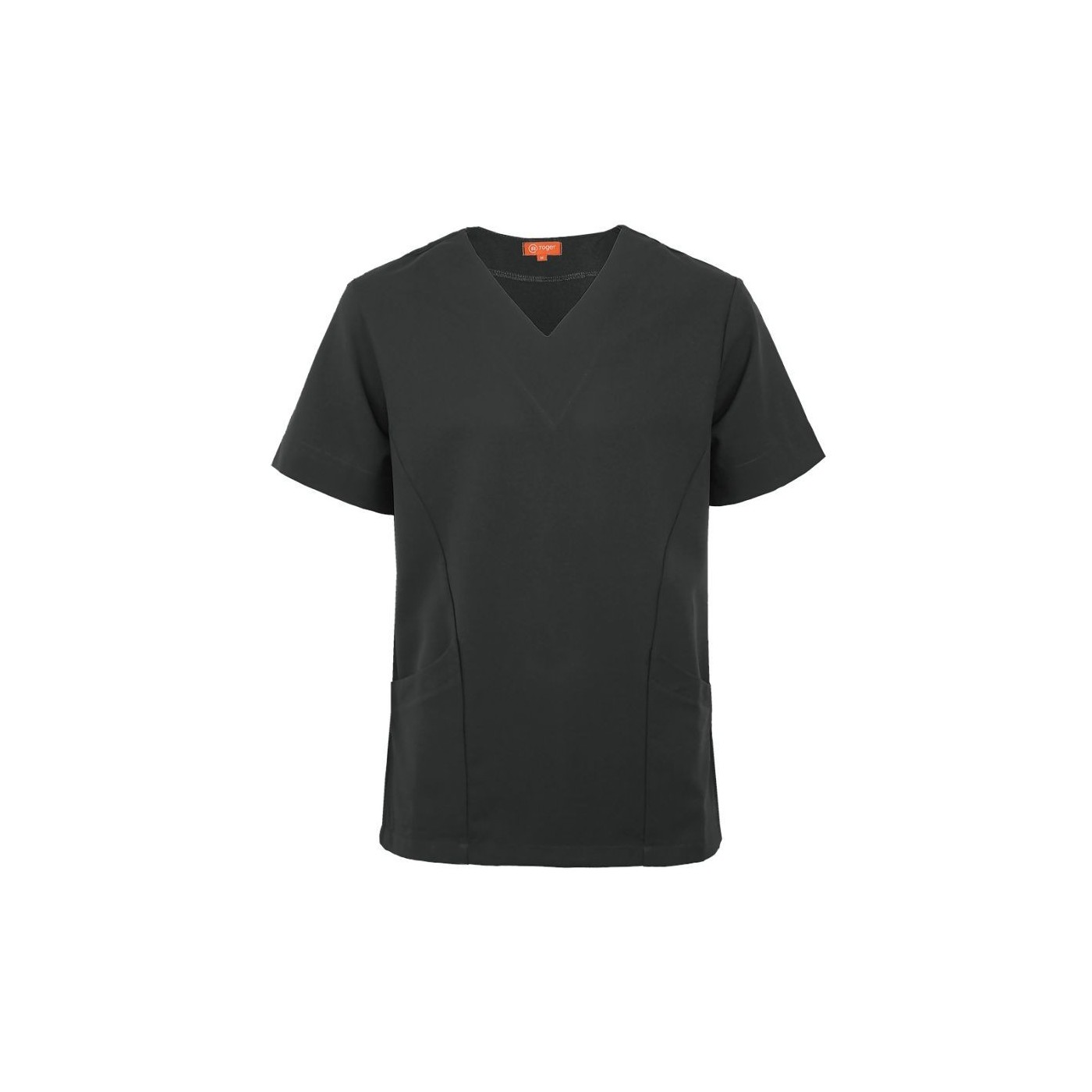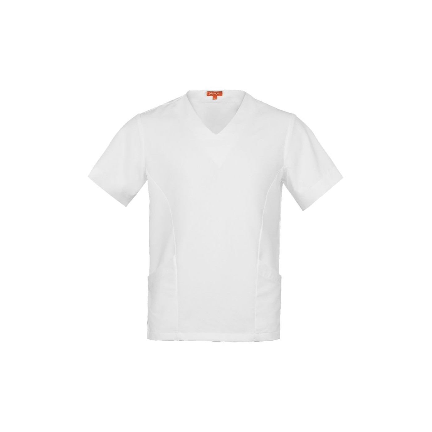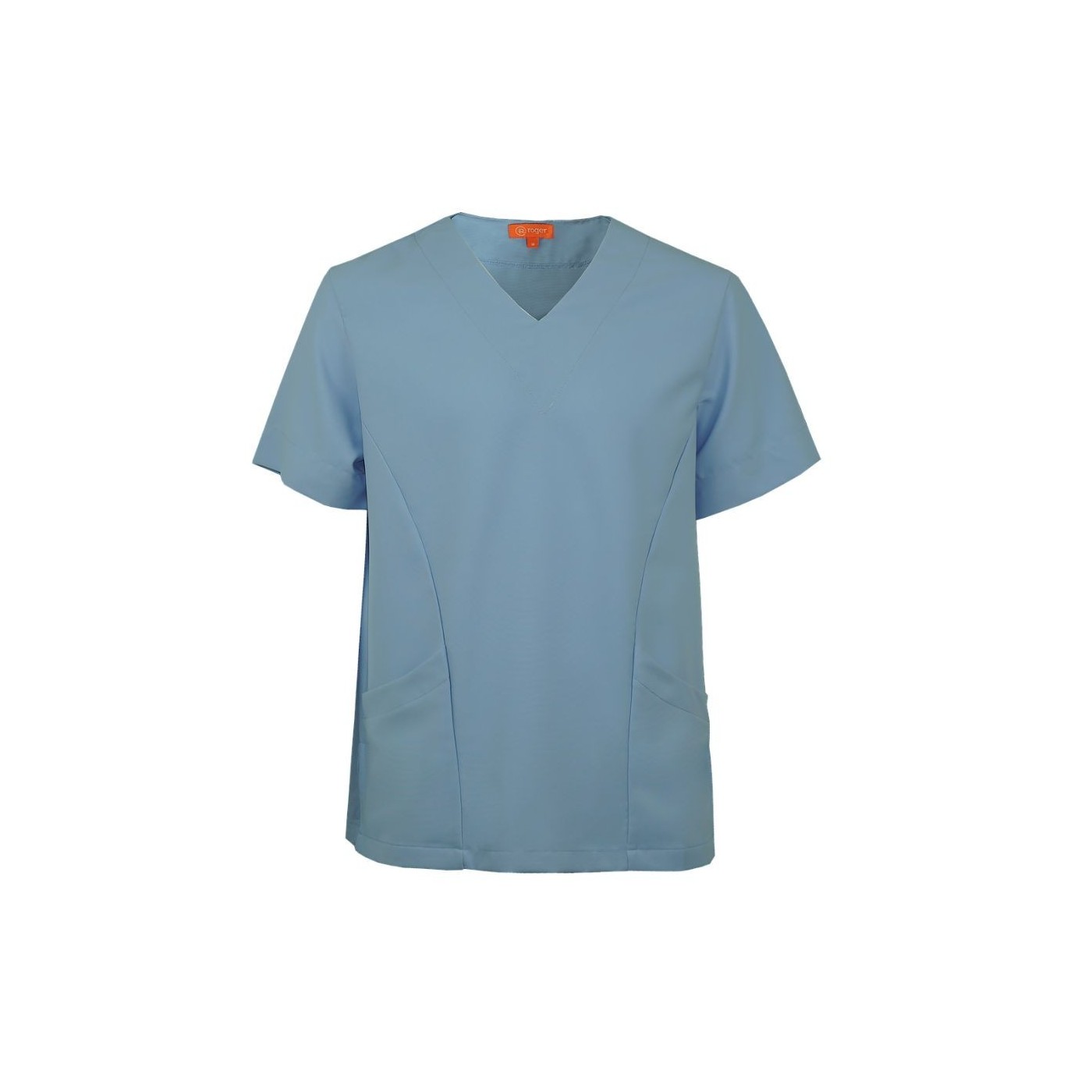 Casaca per a sanitari de microfibra amb escot en pic, tres bolsillos i obertures laterals.