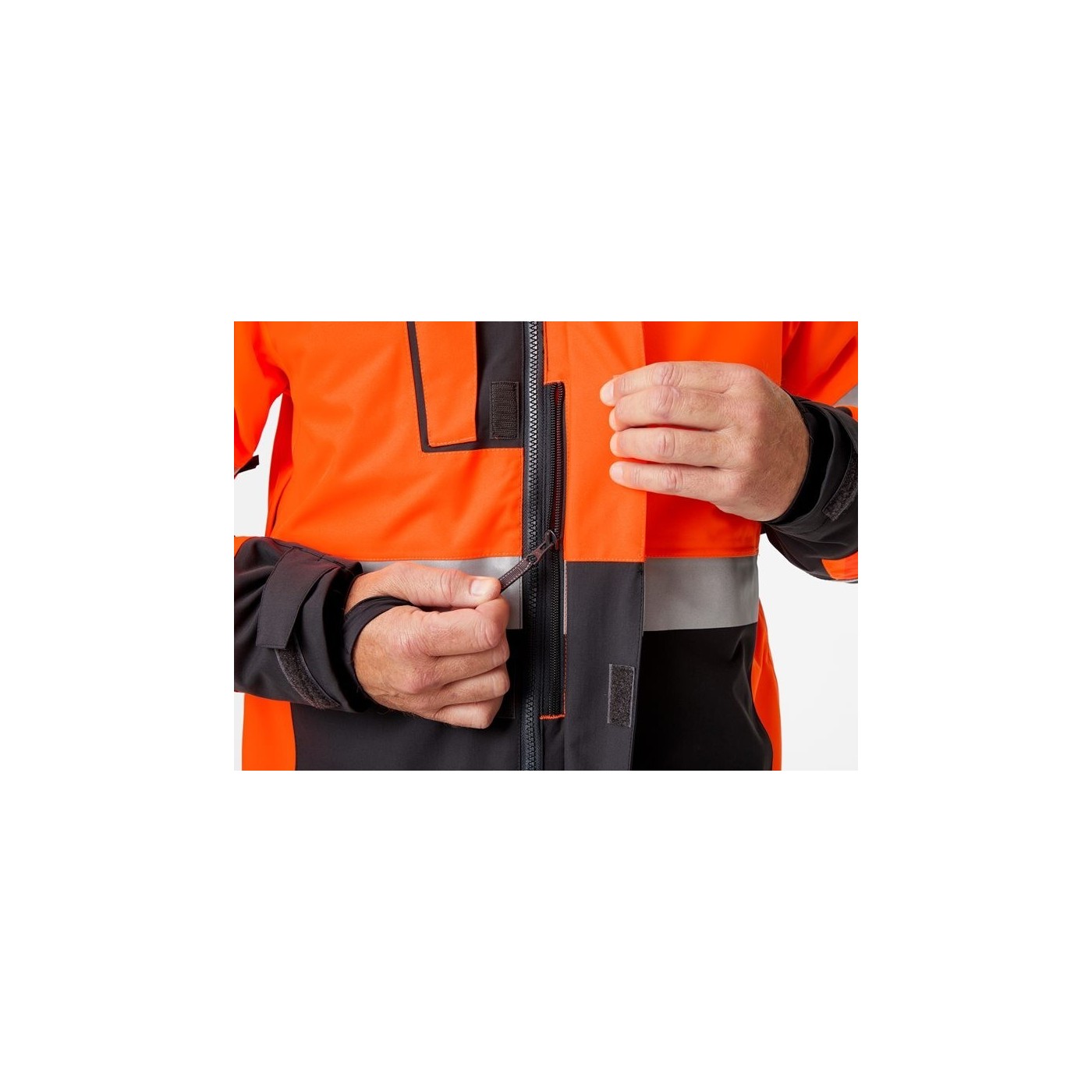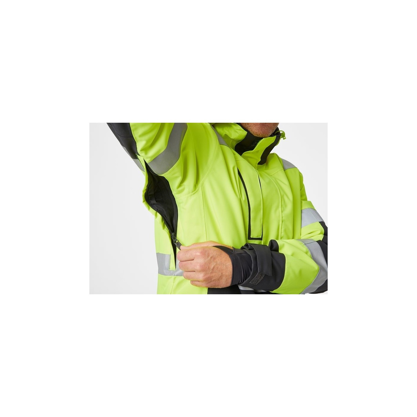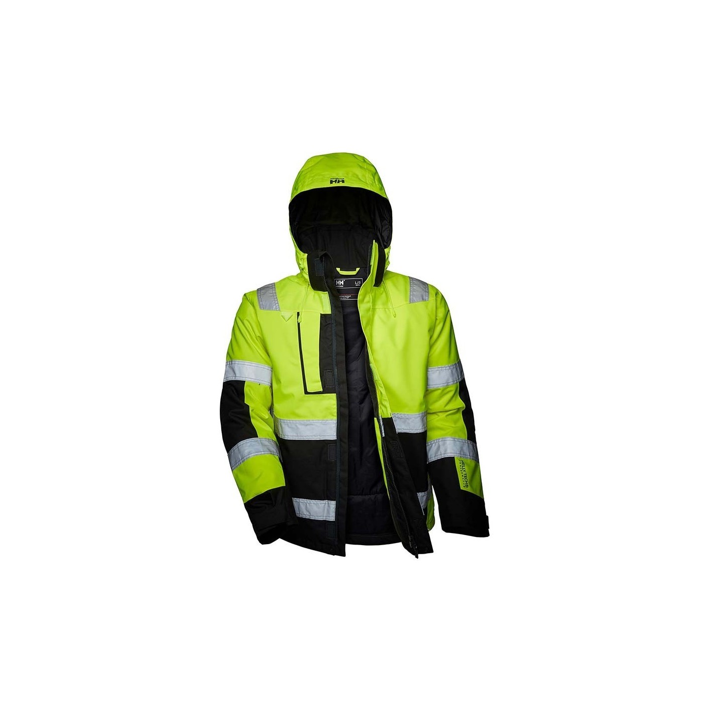 La chaqueta de invierno Alna de Helly Hansen Workwear te mantiene abrigado y visible en los fríos meses de invierno. Con alta visibilidad clase 3, la capucha desmontable y las cremalleras de ventilación permiten modificaciones para adaptarse a su entorno y requisitos de trabajo.