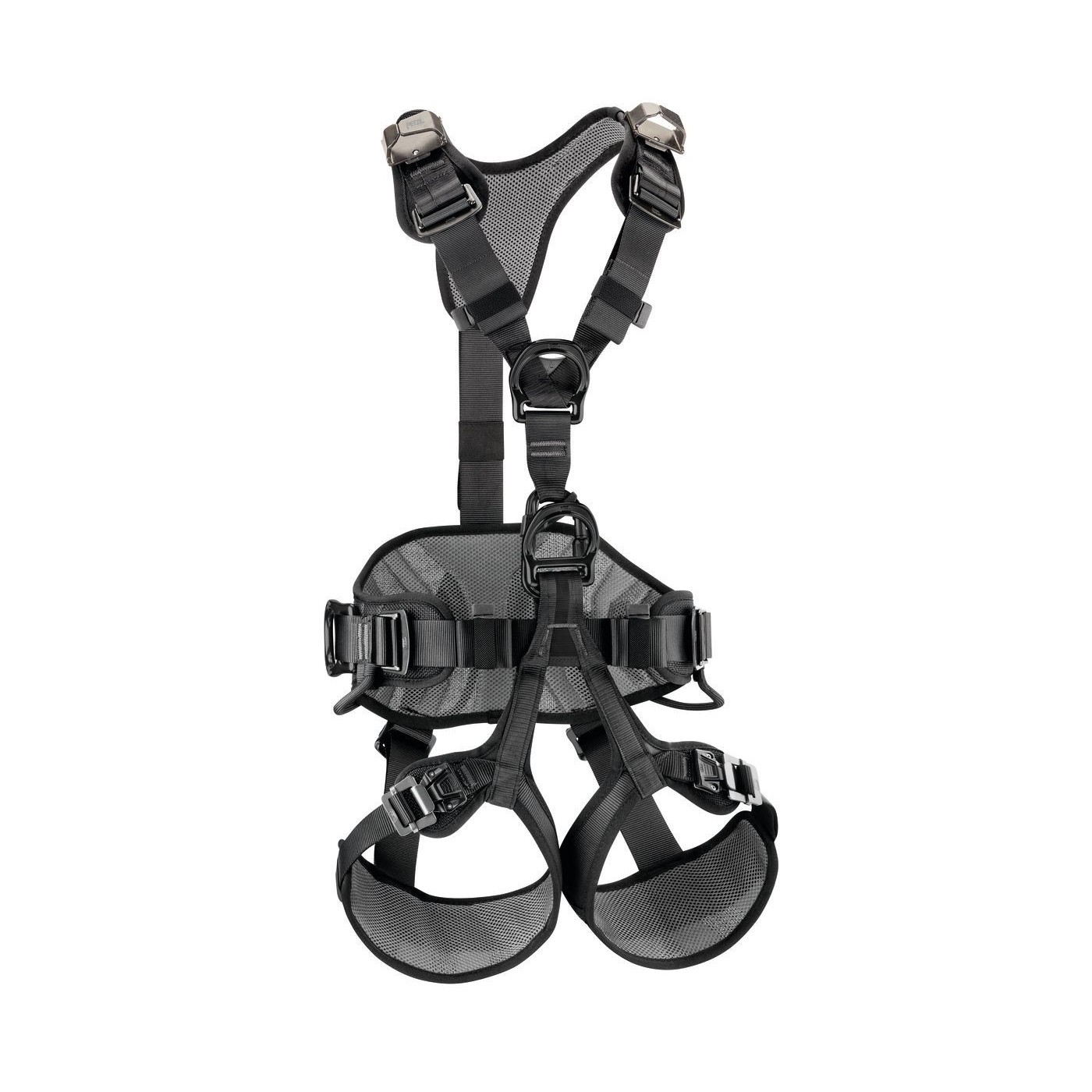 - Hebillas autobloqueantes DOUBLEBACK en la parte posterior del arnés, entre el cinturón y las perneras, que permiten una regulación en caso de utilización del punto de enganche dorsal. En caso de caída sobre este punto, una regulación corta permite cargar el peso en las perneras, y así poder estar más cómodamente suspendido del arnés mientras se espera el rescate. - Facilita llevar y organizar las herramientas de trabajo: