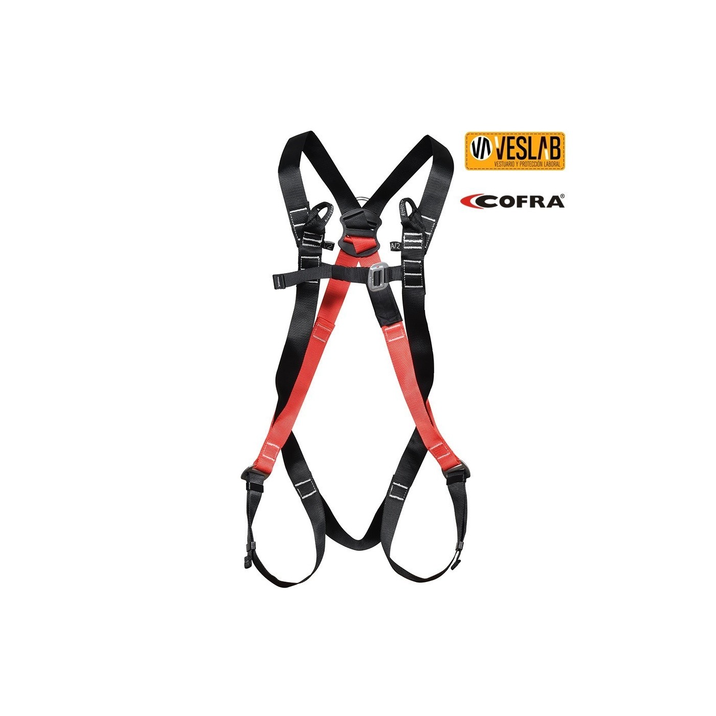 Arnés con diseño sencillo, práctico de llevar. Puntos de enganche dorsal y esternal. Regulación en perneras.
