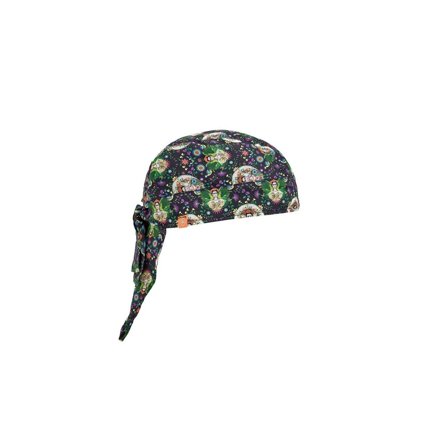 Bandana cocina con estampado de Frida Kahlo, cierre con lazada en la nuca.