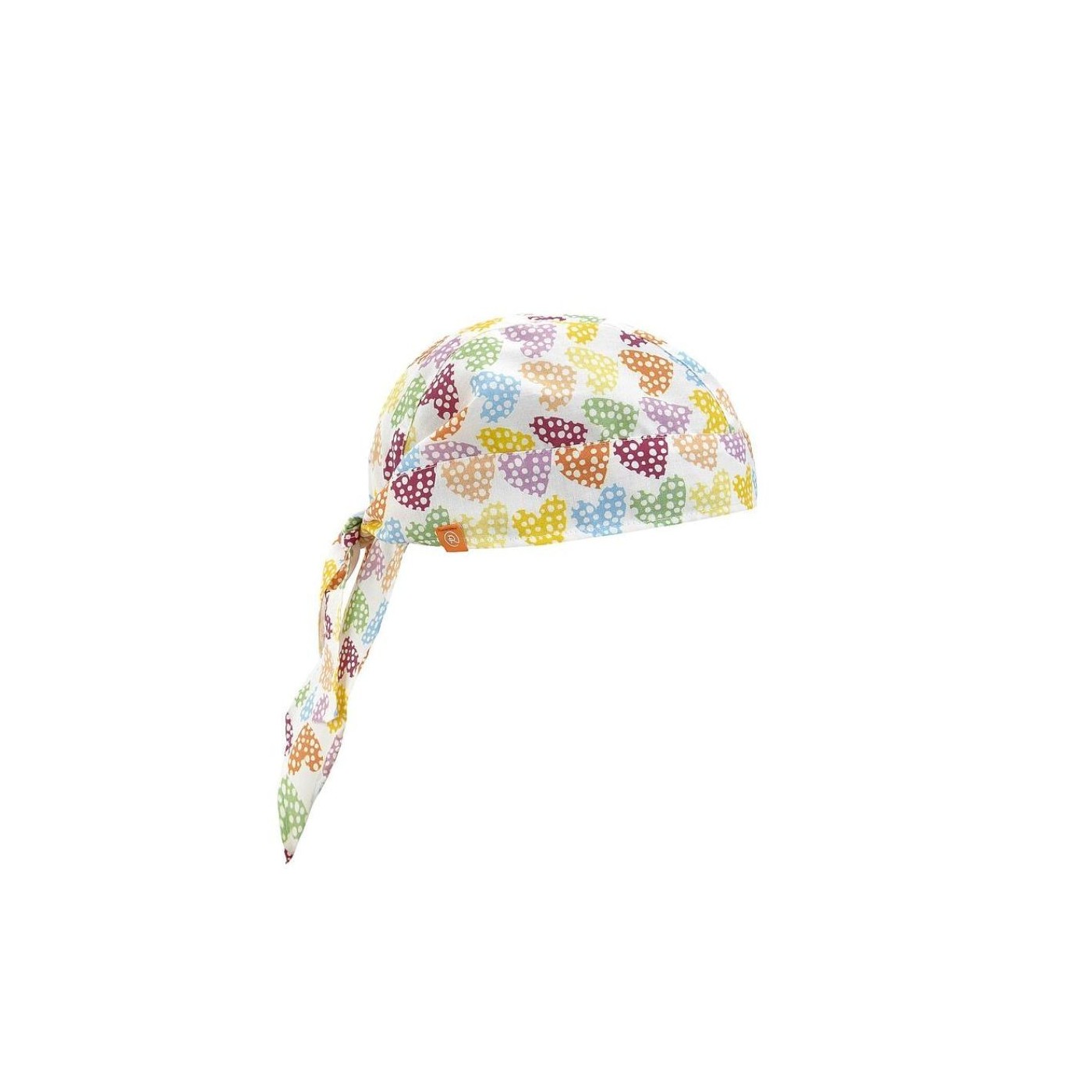 Bandana cocina con estampado de corazones, cierre con lazada en la nuca.