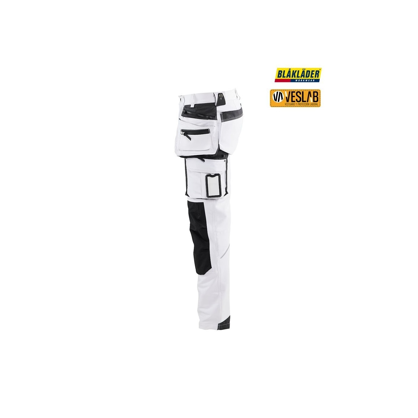 Estos pantalones elásticos de pintor són la última incorporación de Blaklader para pintore. Viene en un tejido elástico en 4 direcciones extremadamente suave, fuerte y elástico en todas las direcciones. Estos pantalones han sido diseñados para soportar tareas muy exigentes sin que ello afecte a la comodidad y el entalle. Los bolsillos són especialmente para llevar pinceles, masilla y cuchillos de pintura.