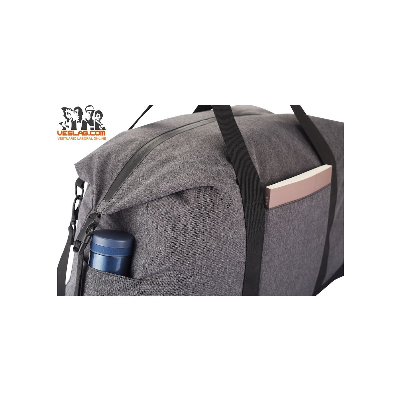 Bolsa de fin de semana con gran capacidad de almacenaje, bolsillo con cremallera y dos interiores. 2 bolsillos exteriores que cierran con Velcro. Cremalleras TPU con tiradores reflectantes.