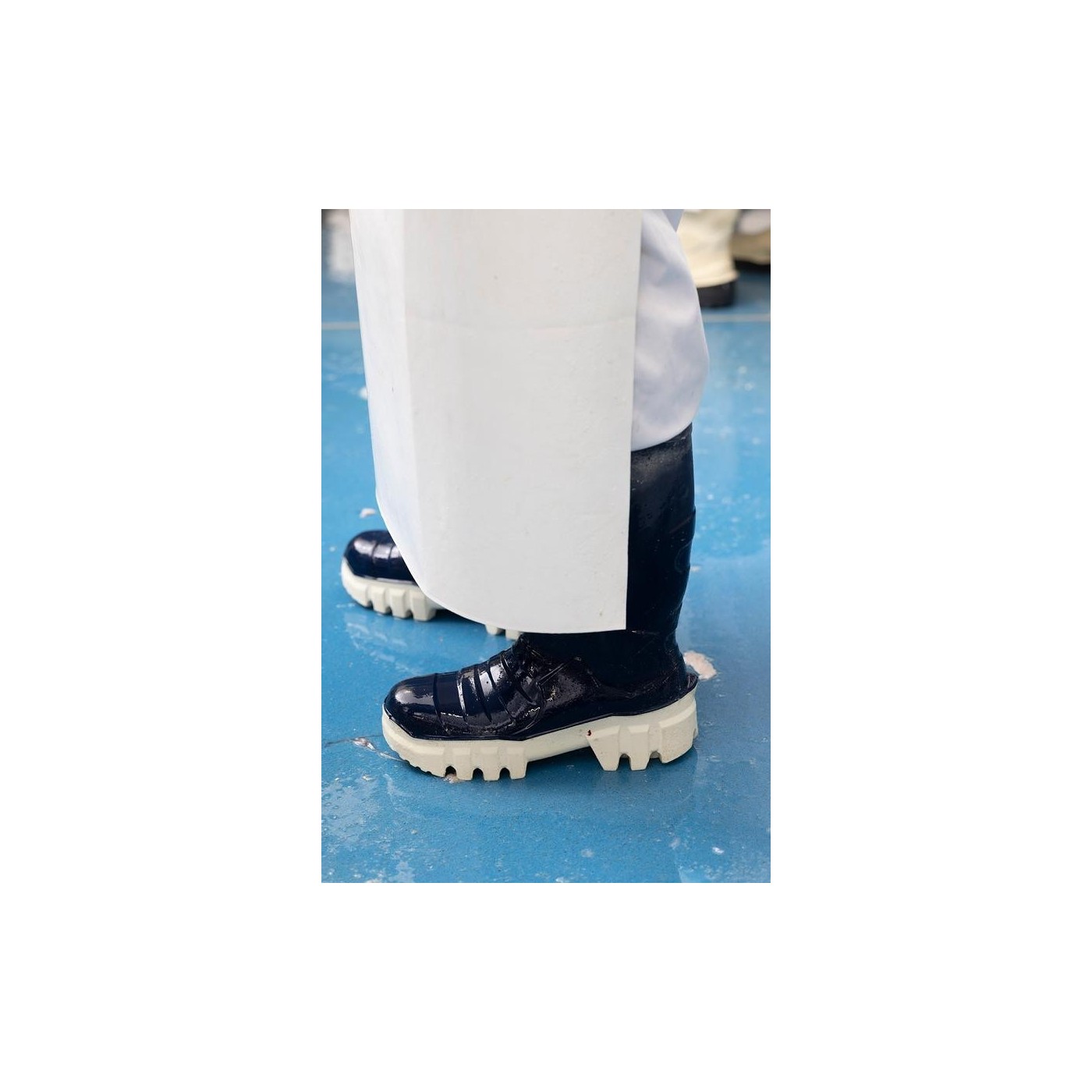 Suela con tacos profundos y antiestáticos, antideslizante y resistente a aceites, grasas, ácidos y disolventes orgánicos.
