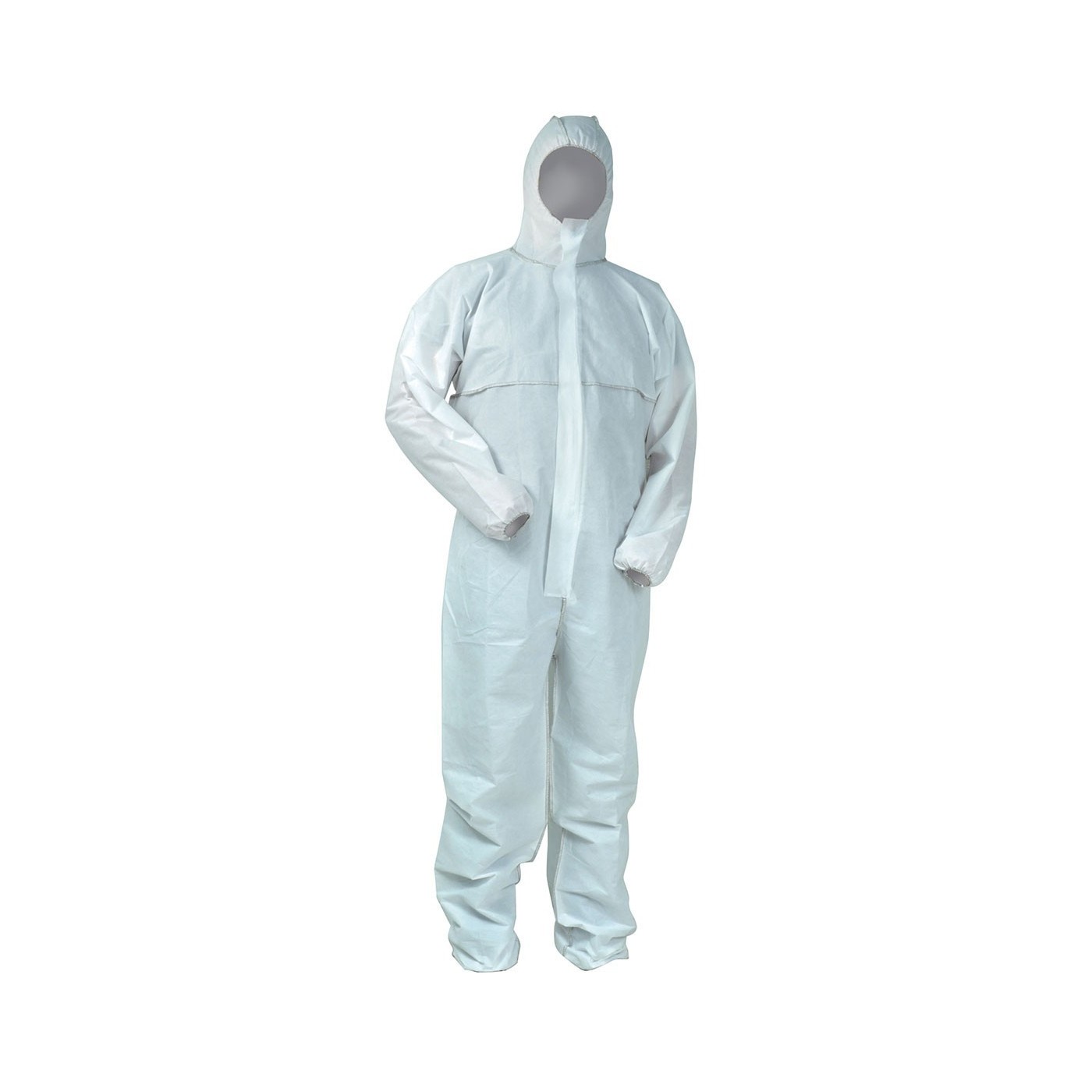 Buzo desechable de categoría III de protección total. Otorga a las prendas ignífugas reutilizables, llevadas debajo del mono, la protección contra líquidos vaporizados, salpicaduras de sustancias químicas, partículas sólidas y radiactivas.